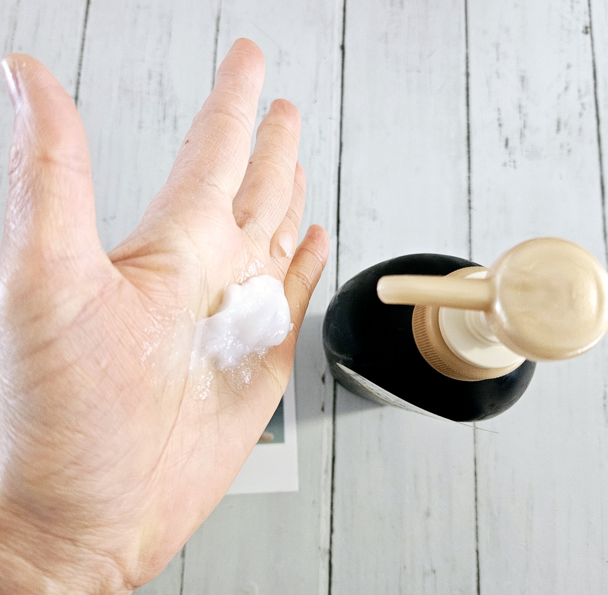 うねり、パサつき、クセ、ハリ・コシなど、幅広い年代の乾燥によるお悩みにアプローチしてくれるというものみたいです。 使い方は簡単。 シャンプーと『スムースリペアエッセンス』を2:1の割合(シャンプーの半量)を手に取り、手のひらでなじませます。 このヘアケアブースター、シャンプーの時頭皮の汚れや皮脂を取り除くだけではなくて良質な自然由来エキスの美容成分をいきわたらせてくれているとのこと。