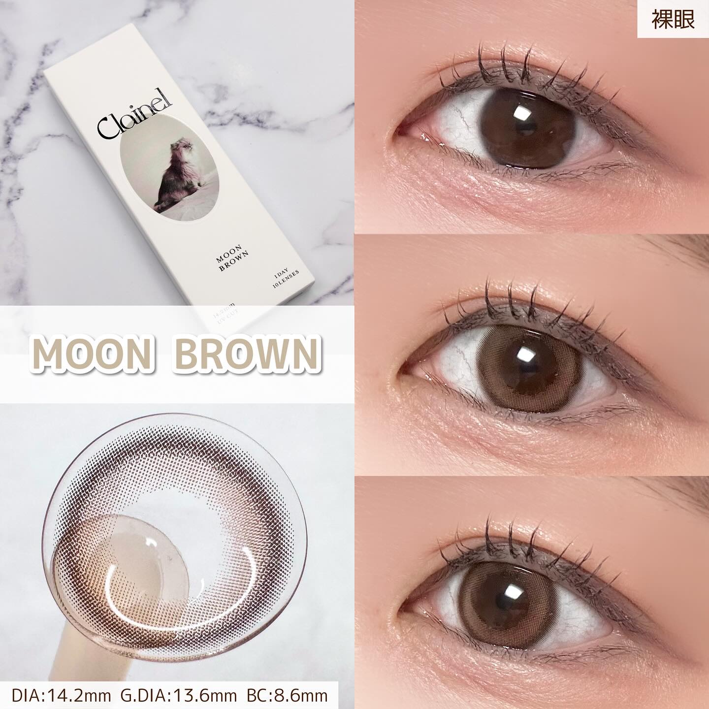 - ※2025年6月以降、商品パッケージ裏面・側面の一部表記を順次変更いたします。尚、これにかかる商品の交換・返品は承っておりません。 <クラシックブラウン> 奥行きのあるデザインとくっきりフチが程よく瞳を強調。 光沢感のあるダークカラーで重たくならず、品格のある洗練された瞳に。 <セピアムード> 細フチデザインが瞳の輪郭をさりげなく強調。 溶け込むようなベージュカラーで、上品な抜け感のある印象に。 <ムーンブラウン> ベーシックに日常生活に溶け込む色素薄い系レンズ。 ニュアンスブラウンカラーが抜け感を演出し、洗練された大人カジュアルな印象に。 <レディモーヴ> 細フチデザインが瞳の輪郭をさりげなく強調。 溶け込むようなベージュカラーで、上品な抜け感のある印象に。 カラーコンタクトレンズの不適正使用による眼障害の危険性等などがあります。 ●コンタクトレンズは高度管理医療機器です。不十分な洗浄・消毒など不適切なケアや、長時間・交換期間を超えた装用により、アレルギー性結膜炎、角膜感染症、角膜潰瘍等の重篤な眼障害が発生する危険性があります ●ご使用前に取扱説明書を確認してください 使用上の留意事項 ●眼科医院等を受診してからお求めください ●眼に異常を感じたら直ちにレンズ使用を中止し、お近くの眼科等で診察を受けてください ●医師の指示にしたがってご使用ください ●コンタクトレンズを装用する場合、自覚症状がなくても、眼科医院等での定期検査を受けてください ●レンズに不具合がある場合は使用しないでください