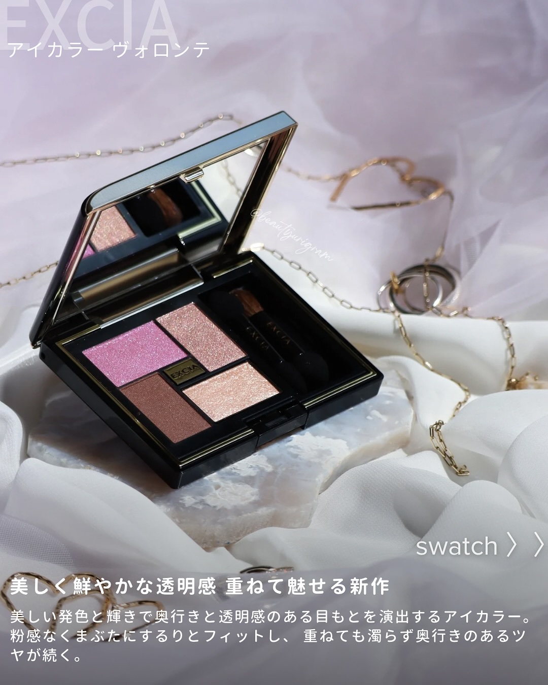 ブルベ大優勝パレット! 大人の華やか透明感ピンクメイク 発売前から大注目と思われるこちら! ブルベのわたしにはやはり肌に透明感が出る!! 個人的には今回のコレクションで 1番ときめいたかもくらい素敵なアイテムなので ぜひチェックしてほしい🥹