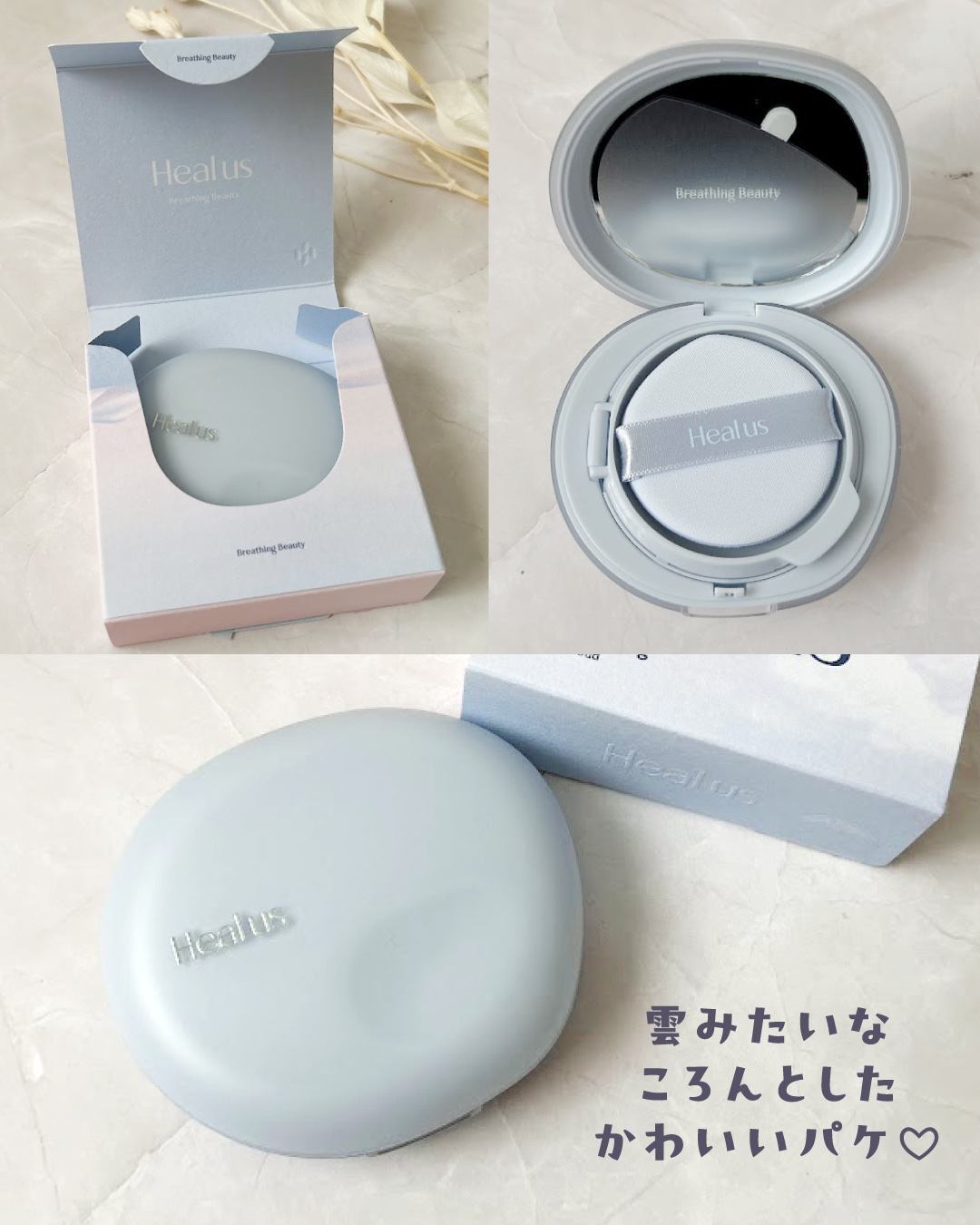 光の屈折を通して華やかなお肌に見せてくれるHealusからの新作クッションファンデ💙 SPF50 PA++++と紫外線からお肌を守ってくれる効果も高いのが嬉しいポイント☺️ 香料やアレルギー成分、海洋生態系有害物質を使用していないビーガン認証なのでいろんな人に使いやすそうだなと思いました☺️