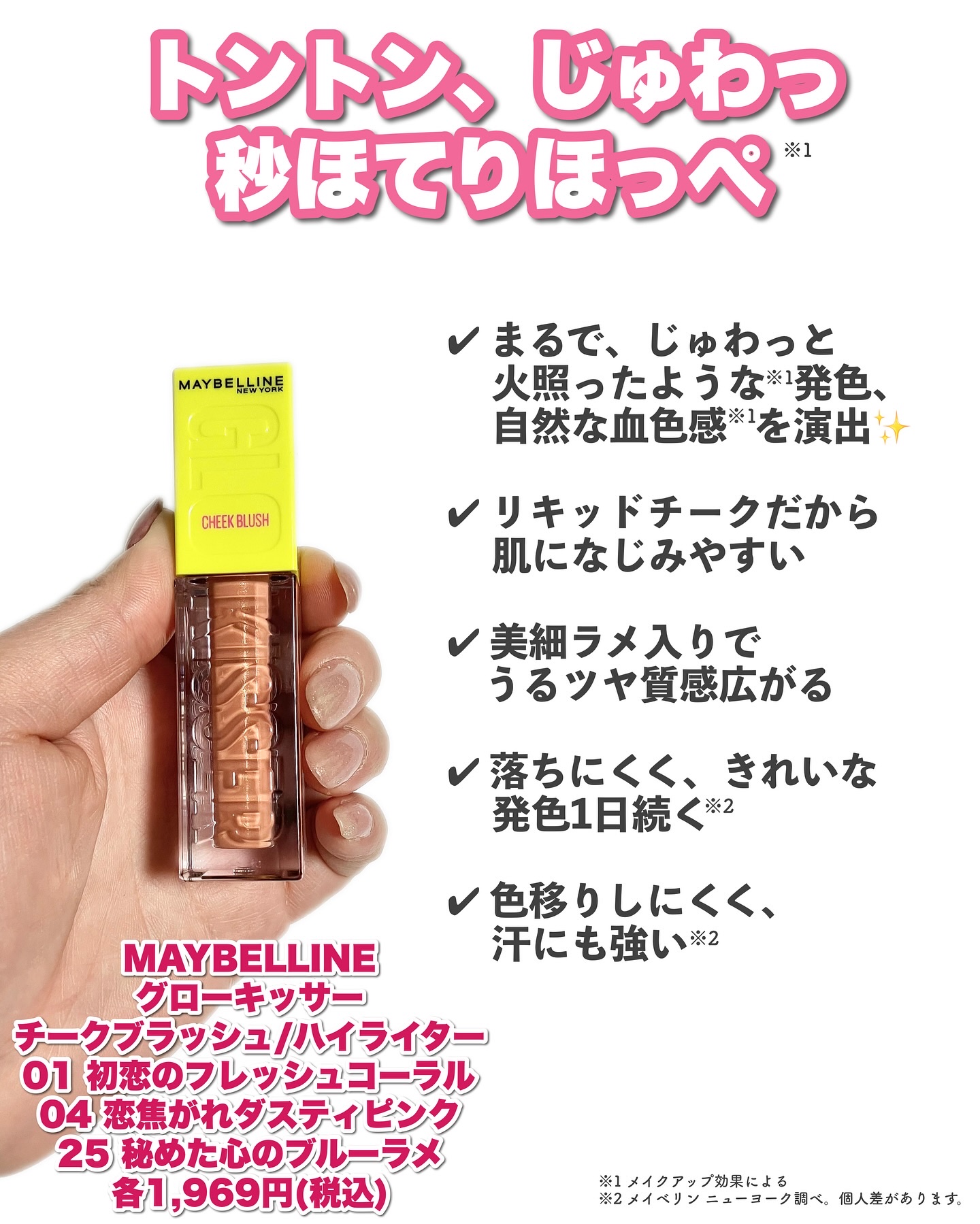Maybelline♡メイベリンGLOKISSERリキッドブラッシュ/ハイライター2025年3月29日全国発売!ほやほや〜《リキッドチーク》血色感✖️ツヤ感《ハイライト》キラめき✖️透明感【01初恋のフレッシュコーラル】じゅわっと火照ったよう...