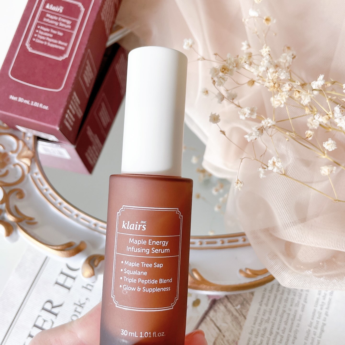 メープル液を濃縮して作った栄養豊富なセラム ×スクワラン×ペプチド 毛穴・弾力ケアに効果的 おでこ、目元、ほうれい線などの小ジワ改善の人体適用試験完了👍🏻 とろーんとのびるシロップテクスチャー ハリ艶がでてもっちり肌になるよ🧡🧡🧡