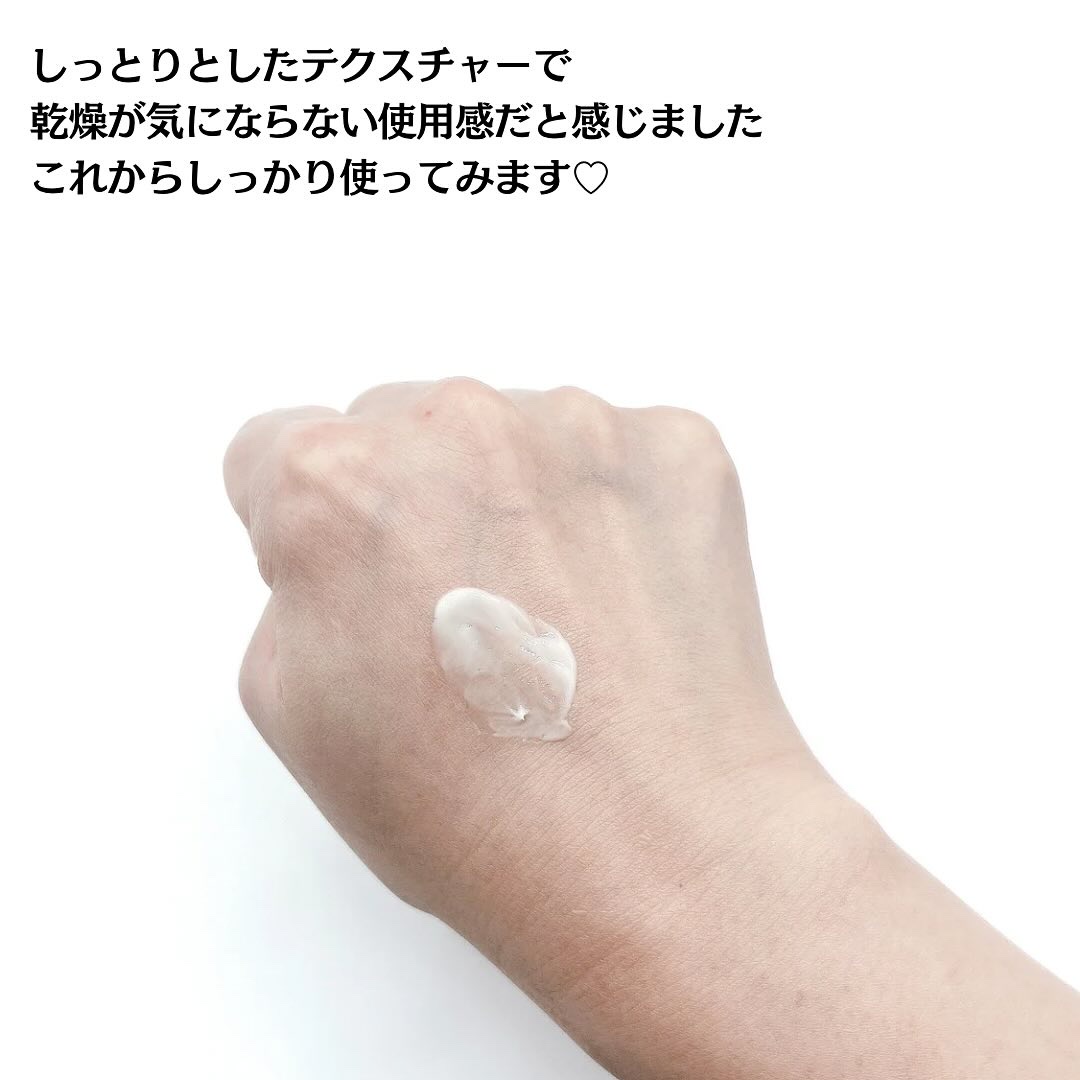 | こっくりとしたテクスチャーで、少量で顔全体に伸ばせそうです。 ベタつきが少なく、塗布後はしっとりとした使用感があるようです。 | 詳細を見る | |