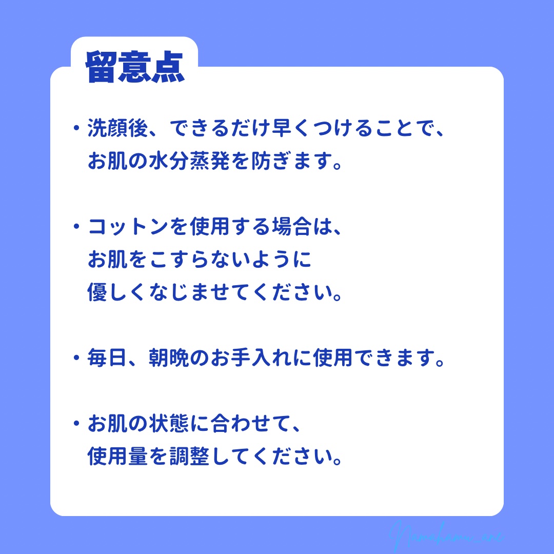 - アミノ酸とその代謝物を、角質層内に存在する天然保湿因子の組成に合わせ配合しました。親水性の高い、糖類の保湿成分との相乗効果により、角質層内に素早く浸透し、水分を保持する働きを助けます。ベタつきのない、肌となじみやすい使用感で、潤いを持続させる化粧水です。