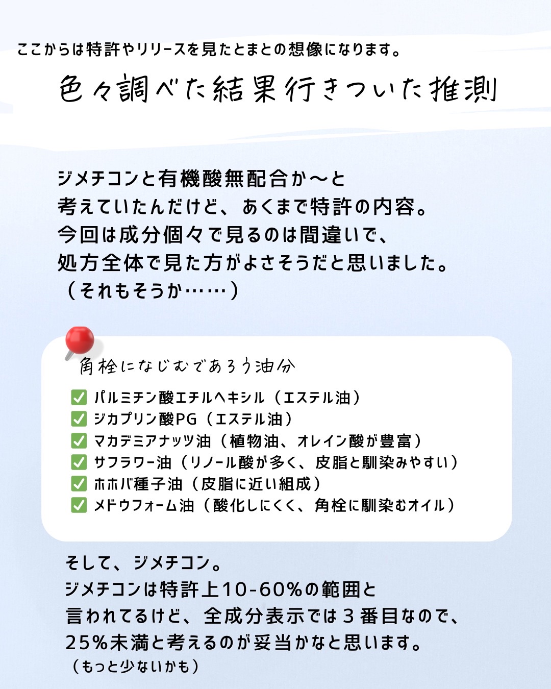 特定の有効成分を試してみたい。美容成分を試したい。そんな時は代用してもいいけど、それって似てるのかな?って思うときが正直ある。 同じ成分があっても実は濃度が違ったり、処方技術が違ったり。技術が違うと使用感も剤型も変わることがあることは知ったうえで使うといいかも。 せっかくプチプラ化粧品を買うならそれはそれで楽しんでほしいから是非念頭にいれてほしいな!!
