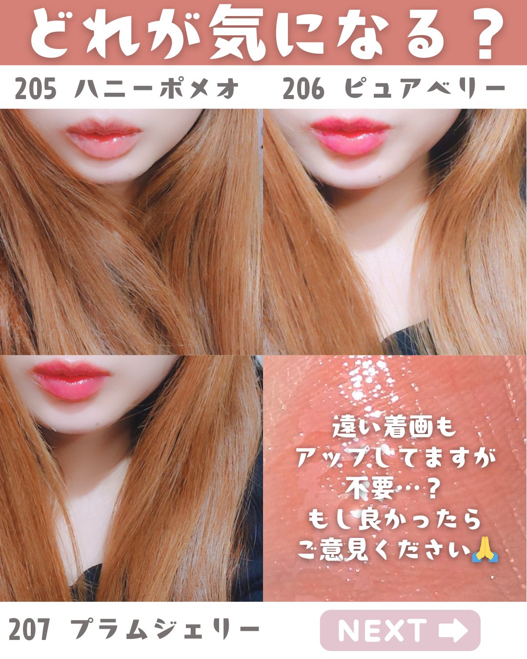 - <01 ピンク> ポリブテン、リンゴ酸ジイソステアリル、トリエチルヘキサノイン、トリイソステアリン酸ポリグリセリル-2、(パルミチン酸/エチルヘキサン酸)デキストリン、(ジイソステアリン酸/水添ロジン酸)グリセリル、ラウロイルグルタミン酸ジ(フィトステリル/オクチルドデシル)、シリカ、フェノキシエタノール、エチルヘキシルグリセリン、メントール、ジメチコン、ジイソステアリン酸グリセリル、トコフェロール、香料、バニリルブチル、シメチコン、セラミド3、水、BG、ペンチレングリコール、エンテロコッカスフェカリス、グルコシルヘスペリジン、水添ポリイソブテン、グリセリン、アクリル酸アルキルコポリマー、PVP、リンゴ果実培養細胞エキス、ヒアルロン酸クロスポリマーNa、キサンタンガム、加水分解コラーゲン、(VP/ポリカルバミルポリグリコール)エステル、ポリ(トリペプチド-6)、塩化Na、加水分解ゴマタンパクPGプロピルメチルシランジオール、レシチン、アセチルヘキサペプチド-8、ハナスゲ根エキス、フラーレン、酸化チタン、酸化鉄、マイカ、硫酸Ba、ロジン、水酸化Al、赤202、赤218、黄4、青1 <02 ラズベリーピンク> ポリブテン、リンゴ酸ジイソステアリル、トリエチルヘキサノイン、トリイソステアリン酸ポリグリセリル-2、(パルミチン酸/エチルヘキサン酸)デキストリン、(ジイソステアリン酸/水添ロジン酸)グリセリル、ラウロイルグルタミン酸ジ(フィトステリル/オクチルドデシル)、シリカ、フェノキシエタノール、エチルヘキシルグリセリン、メントール、ジメチコン、ジイソステアリン酸グリセリル、トコフェロール、香料、バニリルブチル、シメチコン、セラミド3、水、BG、ペンチレングリコール、エンテロコッカスフェカリス、グルコシルヘスペリジン、水添ポリイソブテン、グリセリン、アクリル酸アルキルコポリマー、PVP、リンゴ果実培養細胞エキス、ヒアルロン酸クロスポリマーNa、キサンタンガム、加水分解コラーゲン、(VP/ポリカルバミルポリグリコール)エステル、ポリ(トリペプチド-6)、塩化Na、加水分解ゴマタンパクPGプロピルメチルシランジオール、レシチン、アセチルヘキサペプチド-8、ハナスゲ根エキス、フラーレン、酸化チタン、酸化鉄、マイカ、硫酸Ba、ロジン、水酸化Al、赤202、赤218、黄4、青1 <101 ローズピンク> ポリブテン、リンゴ酸ジイソステアリル、トリエチルヘキサノイン、トリイソステアリン酸ポリグリセリル-2、(パルミチン酸/エチルヘキサン酸)デキストリン、(ジイソステアリン酸/水添ロジン酸)グリセリル、ラウロイルグルタミン酸ジ(フィトステリル/オクチルドデシル)、シリカ、フェノキシエタノール、エチルヘキシルグリセリン、メントール、ジメチコン、ジイソステアリン酸グリセリル、トコフェロール、香料、バニリルブチル、シメチコン、セラミド3、水、BG、ペンチレングリコール、エンテロコッカスフェカリス、グルコシルヘスペリジン、水添ポリイソブテン、グリセリン、アクリル酸アルキルコポリマー、PVP、リンゴ果実培養細胞エキス、ヒアルロン酸クロスポリマーNa、キサンタンガム、加水分解コラーゲン、(VP/ポリカルバミルポリグリコール)エステル、ポリ(トリペプチド-6)、塩化Na、加水分解ゴマタンパクPGプロピルメチルシランジオール、レシチン、アセチルヘキサペプチド-8、ハナスゲ根エキス、フラーレン、酸化チタン、酸化鉄、マイカ、硫酸Ba、ロジン、水酸化Al、赤202、赤218、黄4、青1 <201 フィグピンク> ポリブテン、リンゴ酸ジイソステアリル、トリエチルヘキサノイン、トリイソステアリン酸ポリグリセリル-2、(ジイソステアリン酸/水添ロジン酸)グリセリル、(パルミチン酸/エチルヘキサン酸)デキストリン、ラウロイルグルタミン酸ジ(フィトステリル/オクチルドデシル)、シリカ、フェノキシエタノール、エチルヘキシルグリセリン、メントール、ジメチコン、ジイソステアリン酸グリセリル、トコフェロール、香料、バニリルブチル、シメチコン、セラミド3、水、BG、ペンチレングリコール、エンテロコッカスフェカリス、グルコシルヘスペリジン、水添ポリイソブテン、グリセリン、アクリレーツコポリマー、PVP、リンゴ果実培養細胞エキス、ヒアルロン酸クロスポリマーNa、キサンタンガム、加水分解コラーゲン、(VP/ポリカルバミルポリグリコール)エステル、ポリ(トリペプチド-6)、加水分解ゴマタンパクPGプロピルメチルシランジオール、レシチン、アセチルヘキサペプチド-8、ハナスゲ根エキス、フラーレン、酸化チタン、酸化鉄、マイカ、水酸化Al、硫酸Ba、ロジン、赤202、赤218、青1 <202 チェリーレッド> ポリブテン、リンゴ酸ジイソステアリル、トリエチルヘキサノイン、トリイソステアリン酸ポリグリセリル-2、(ジイソステアリン酸/水添ロジン酸)グリセリル、(パルミチン酸/エチルヘキサン酸)デキストリン、ラウロイルグルタミン酸ジ(フィトステリル/オクチルドデシル)、シリカ、フェノキシエタノール、エチル