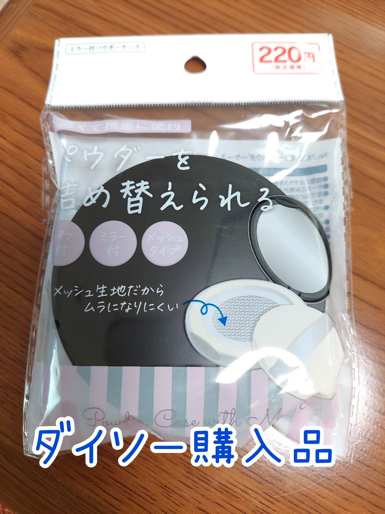 見かけたら即買い!! 家の近くで買ったときラスト1点で、その後見に行ったけどもうなかった… 220円商品だけど、それ以上の価値あると思います‼︎ なんとパウダーの詰め替えができる✨ パフと鏡も付いていて、持ち運びにも便利!