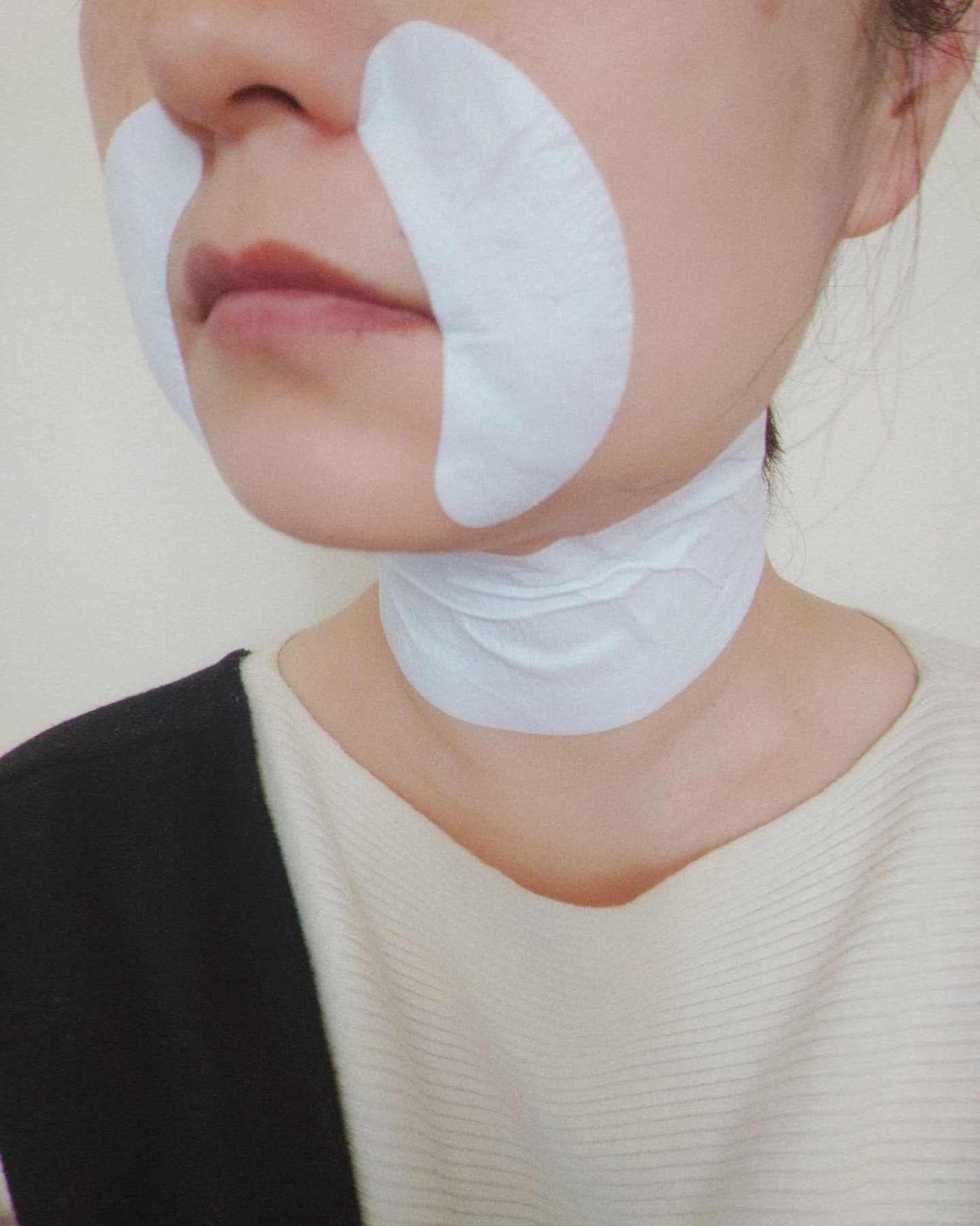 顔より年齢サインが出やすい首のケアに!スピキュール3000ショット🪡 中が空洞になったエアロスピキュールが美容成分と酸素を角質層まで一緒に届け、肌の再生を助けてくれるそうです☝🏻 薄くやわらかいハイドロゲルシートが首にぴたっと密着してくれるからケア中に家事も出来ちゃう🙆♀️ パック後は、残ったクリームを肌に馴染ませればさらっとします🤗