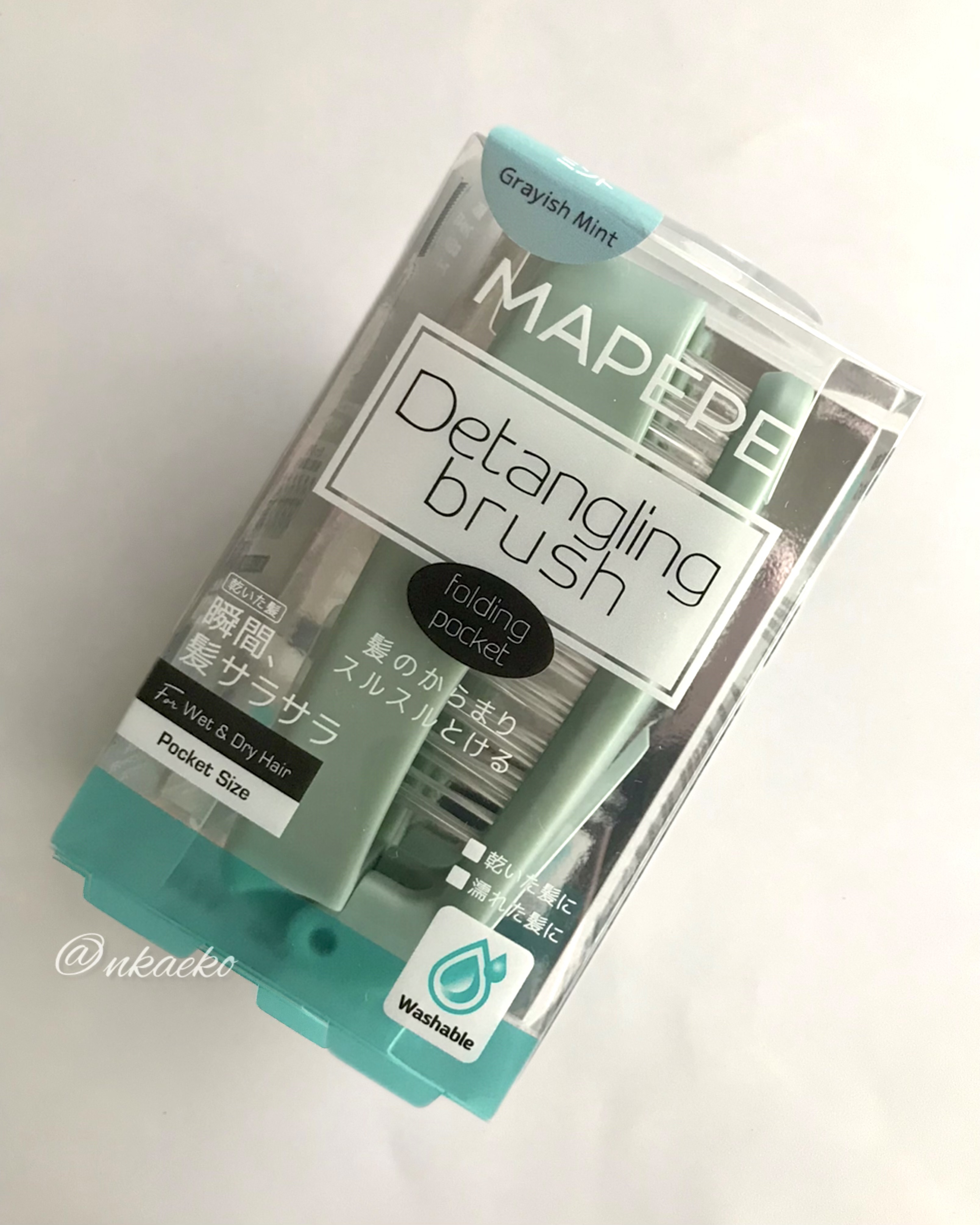 【レビューメモ♡】すでに2種類のブラシを愛用しているマペペ。折りたたみ式でさらに持ち運びに便利になったので、持っていないカラーを購入しました!MAPEPE(マペペ)デタングリングブラシ〈フォールディングポケット〉グレイッシュミント880円(税...