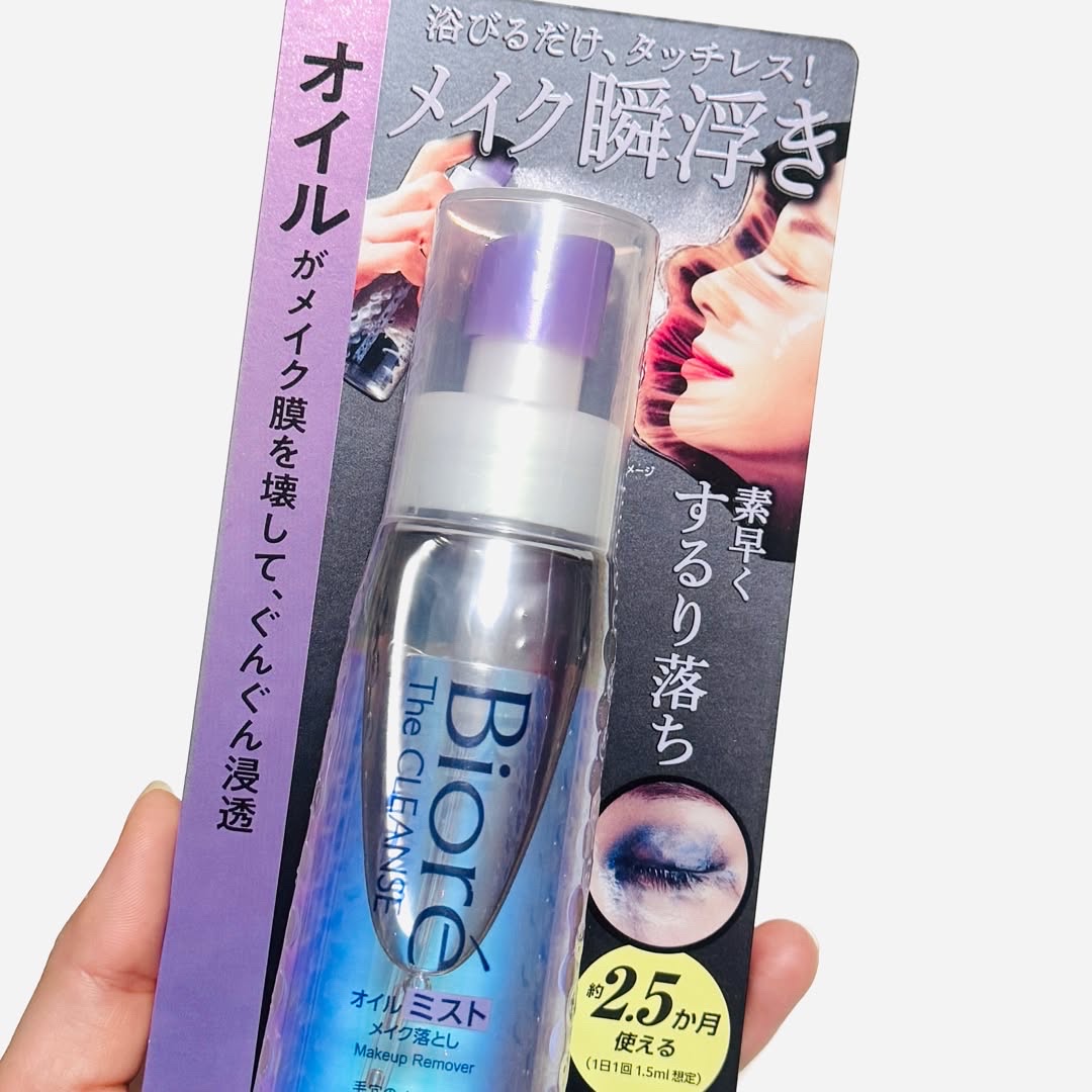 夜疲れて帰宅すると、メイクを落とすのが面倒…そんな時に便利なのがこちらのビオレ The クレンズ オイルミストメイク落とし なんと容器がスプレー。シュットして使うメイク落とし!くるくるなじませなくても、浴びるだけ、タッチレスで、メイク瞬浮き! これは、シュッとするだけでメイクが浮いてくるので楽でした。そして、こすらなくて良いから、私は肌への刺激もそこまで感じず良かったです。