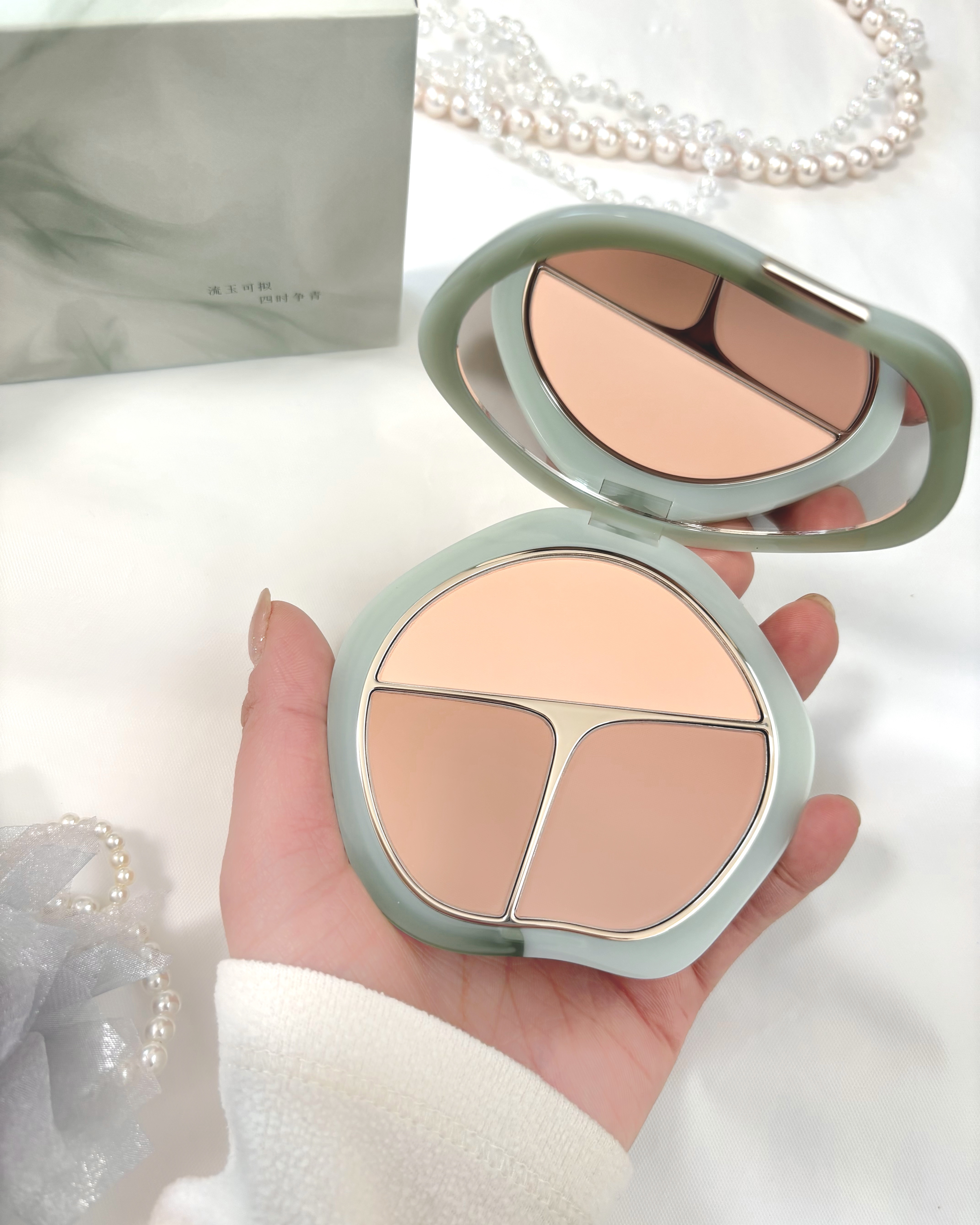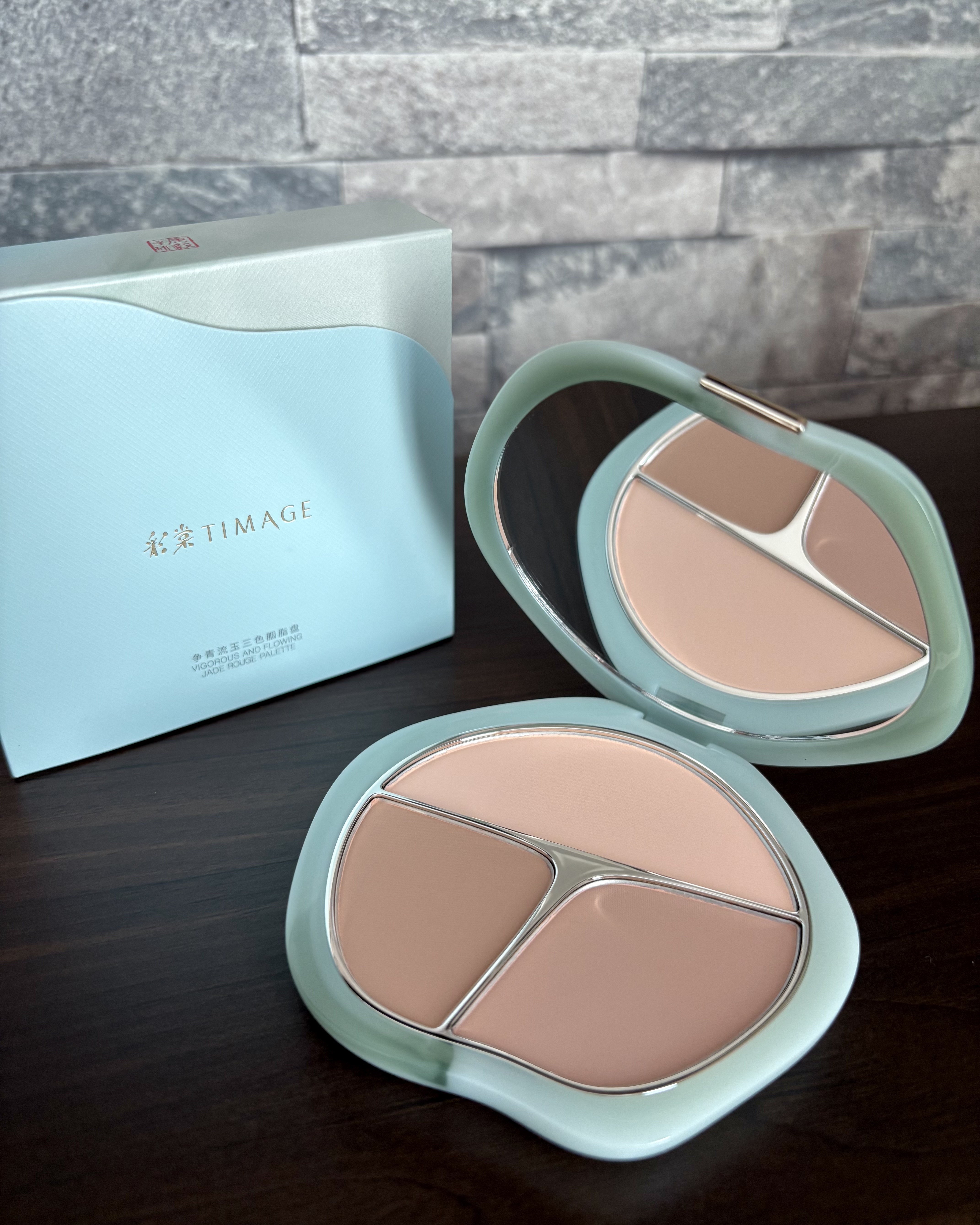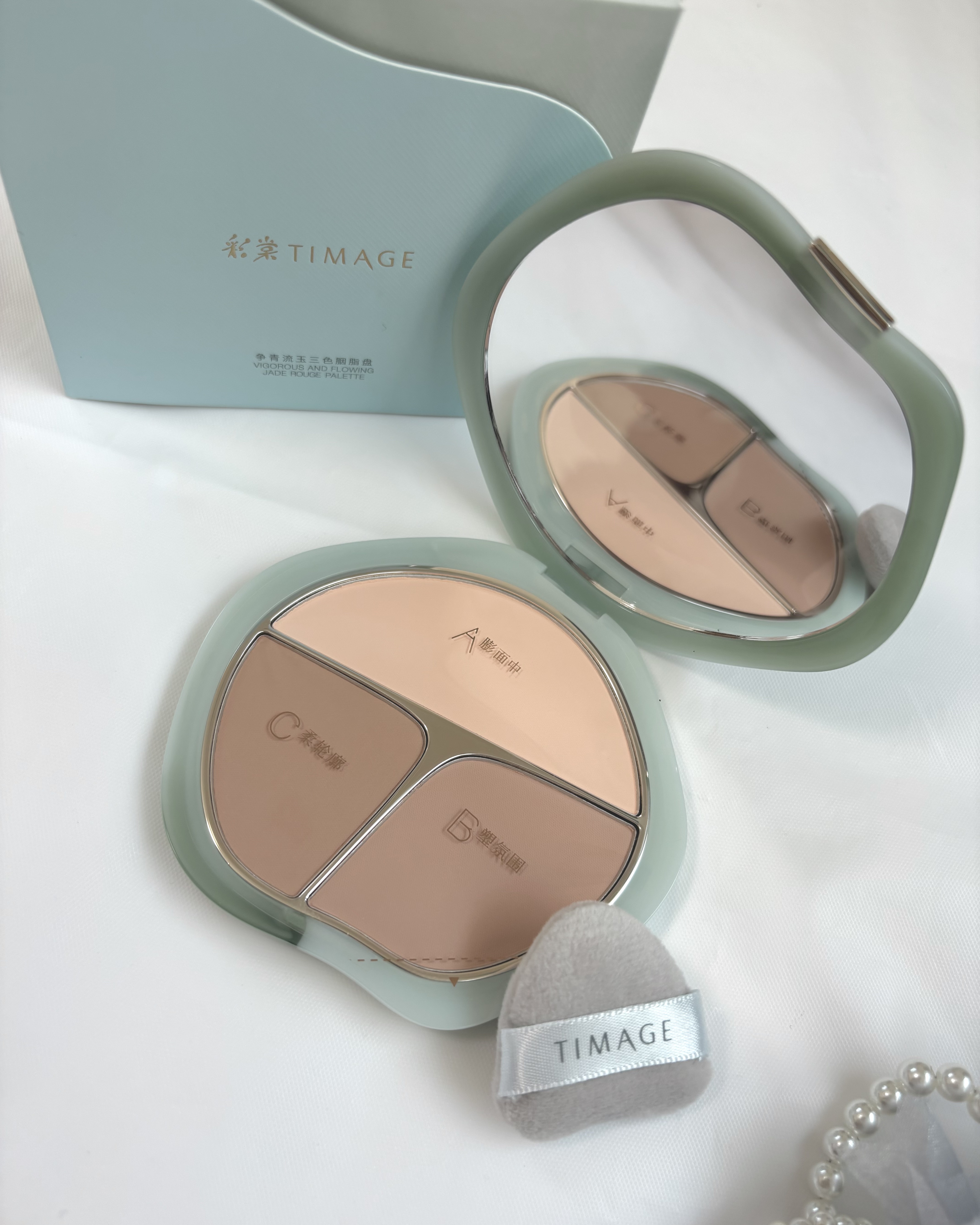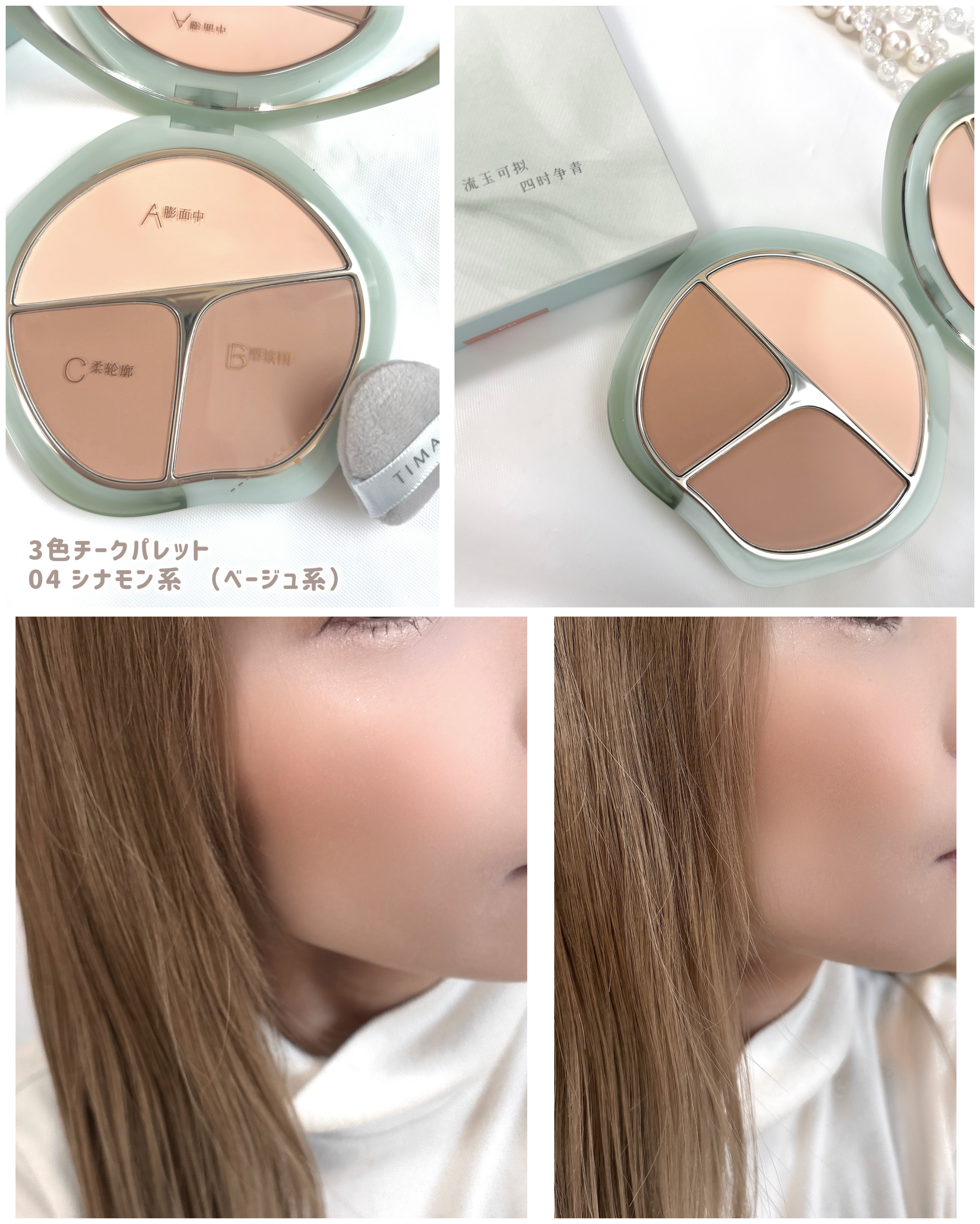 _TIMAGEティメージ3色チークパレット04シナモン系(ベージュ系)13g/パウダーパフ×1/¥4,089(税込)【異なる明度と彩度の色で自然なグラデーションと立体感を作る】予算5000円以内で女友達に喜ばれるコスメ!翡翠のような高級感のあ...