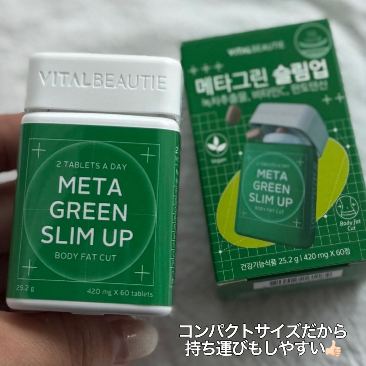 あんにょん💚VITALBEAUTIE(@vitalbeautie_official)メタグリーンスリムアップが新しくなったよ🥹💚1.カテキンの含有量が120%アップ従来品よりカテキン含有量が増加し脂肪燃焼をサポート2.摂取量が少なくて済むカテ...