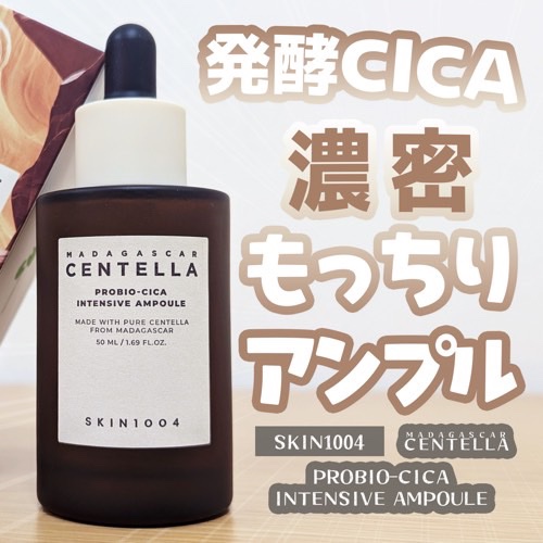 肌バリア強化!SKIN1004プロバイオシカ インテンシブアンプル✨ このアンプル、乳酸菌+発酵ツボクサで美容をサポートして、CICA(※整肌成分)セラミド(※保湿成分)とコラーゲン(※保湿成分)が肌バリアを強化。 使った後、もっちりしたテクスチャーで肌がしっとりして、長時間保湿される感じ✨ ベタつかず、高保湿で軽やかな使い心地が気に入ってます😊 肌バリアをしっかりケアしたいなら、これ試してみて!絶対おすすめだよ〜💖