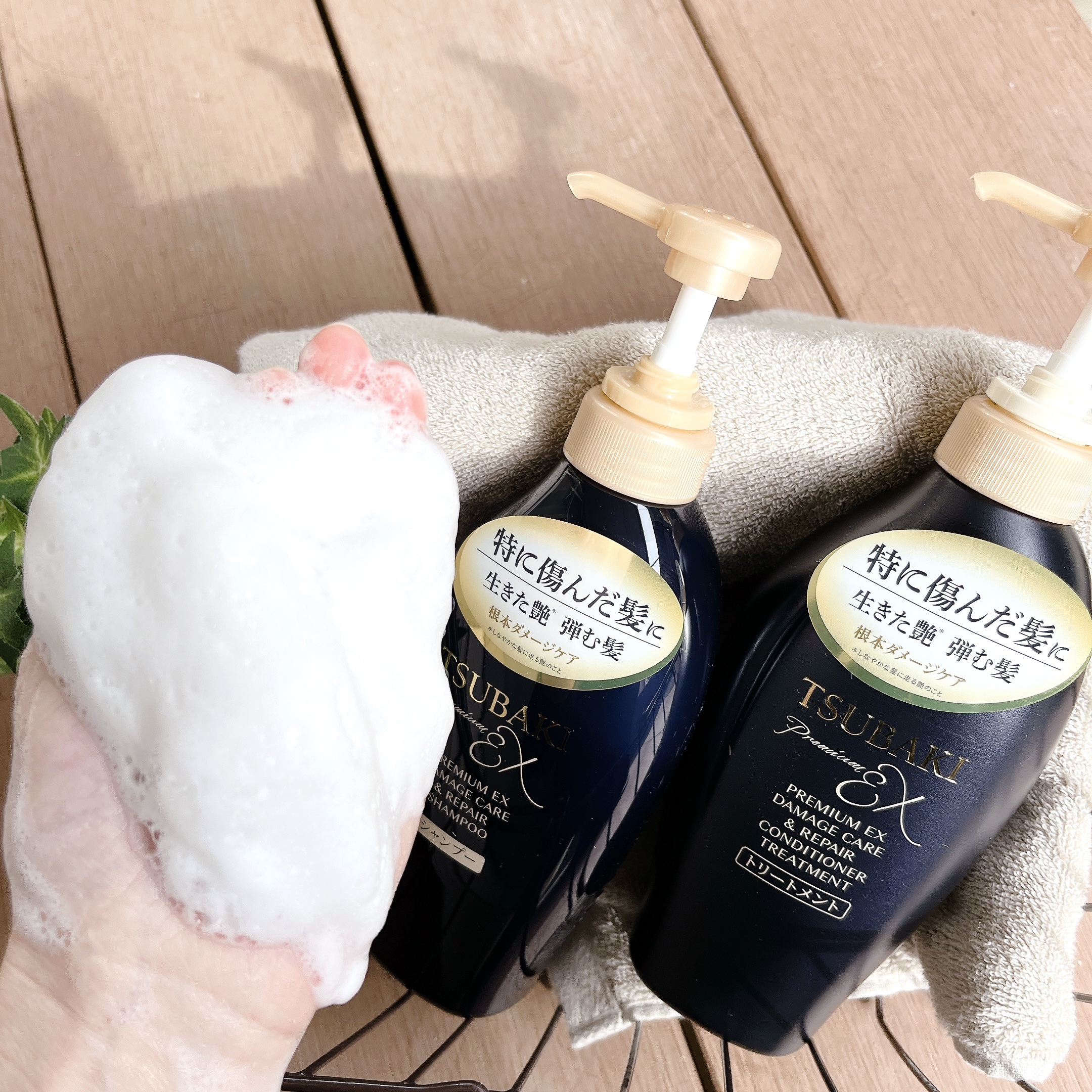 TSUBAKIから商品提供を頂きました。TSUBAKIプレミアムEXダメージケア&リペア〈シャンプー/トリートメント〉💗シャンプー大人の雰囲気がある素敵なボトルデザイン。中身はとろーりソフトなテクスチャーで、モコモコのしっかりとした泡立ちです...