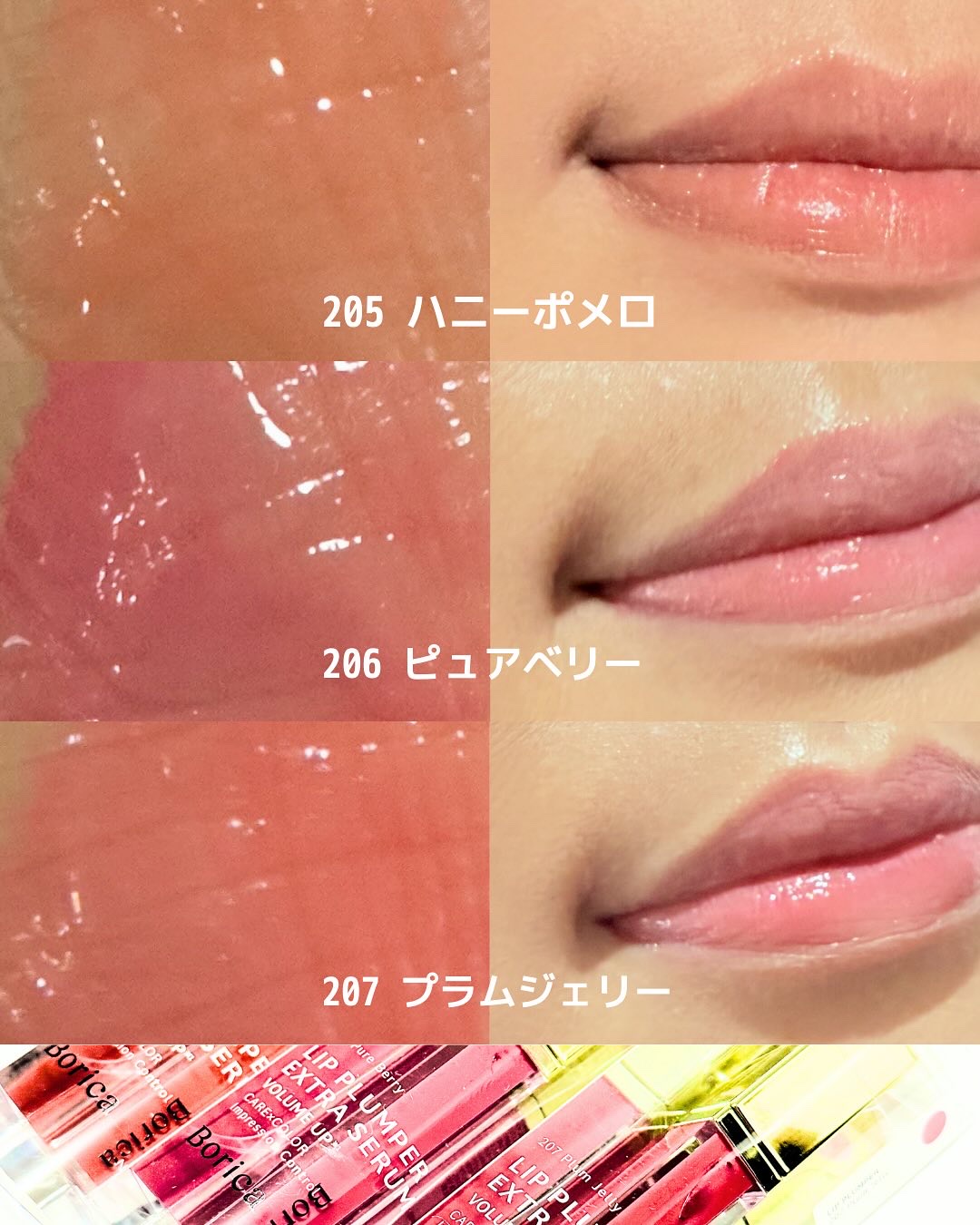 Boricaリッププランパーエクストラセラム🍯205ハニーポメロ🍇206ピュアベリー🍒207プラムジェリー*・。*・。*・。*・。*・3Dヒアルロン酸配合*のプランパーで、ちゅるんとしたうるおい唇リップに💄ピリピリが強すぎるプランパーが苦手な...