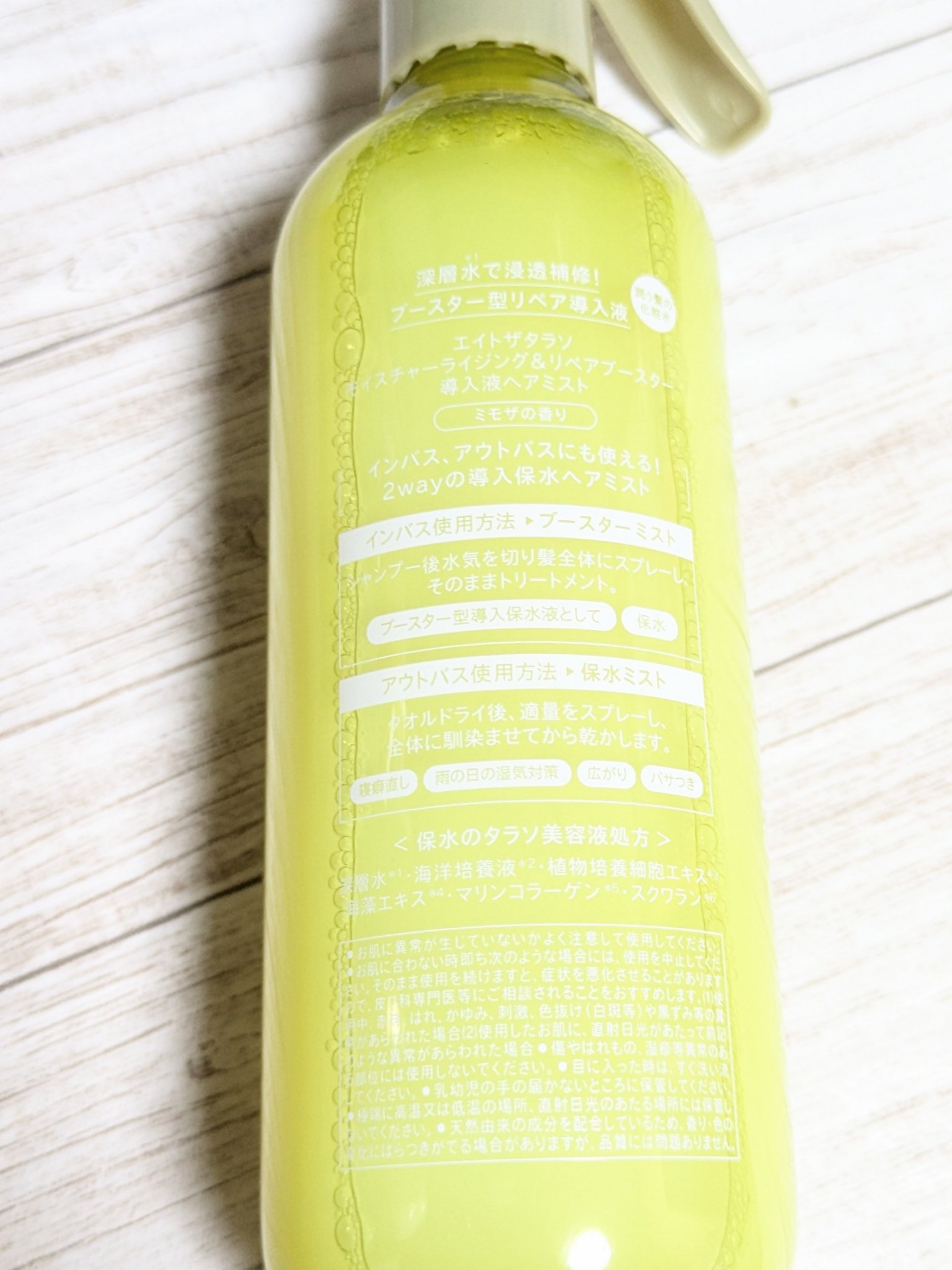 商品詳細情報エイトザタラソ モイスチャーライジング&リペアブースター 導入液ヘアミスト ミモザの香り
