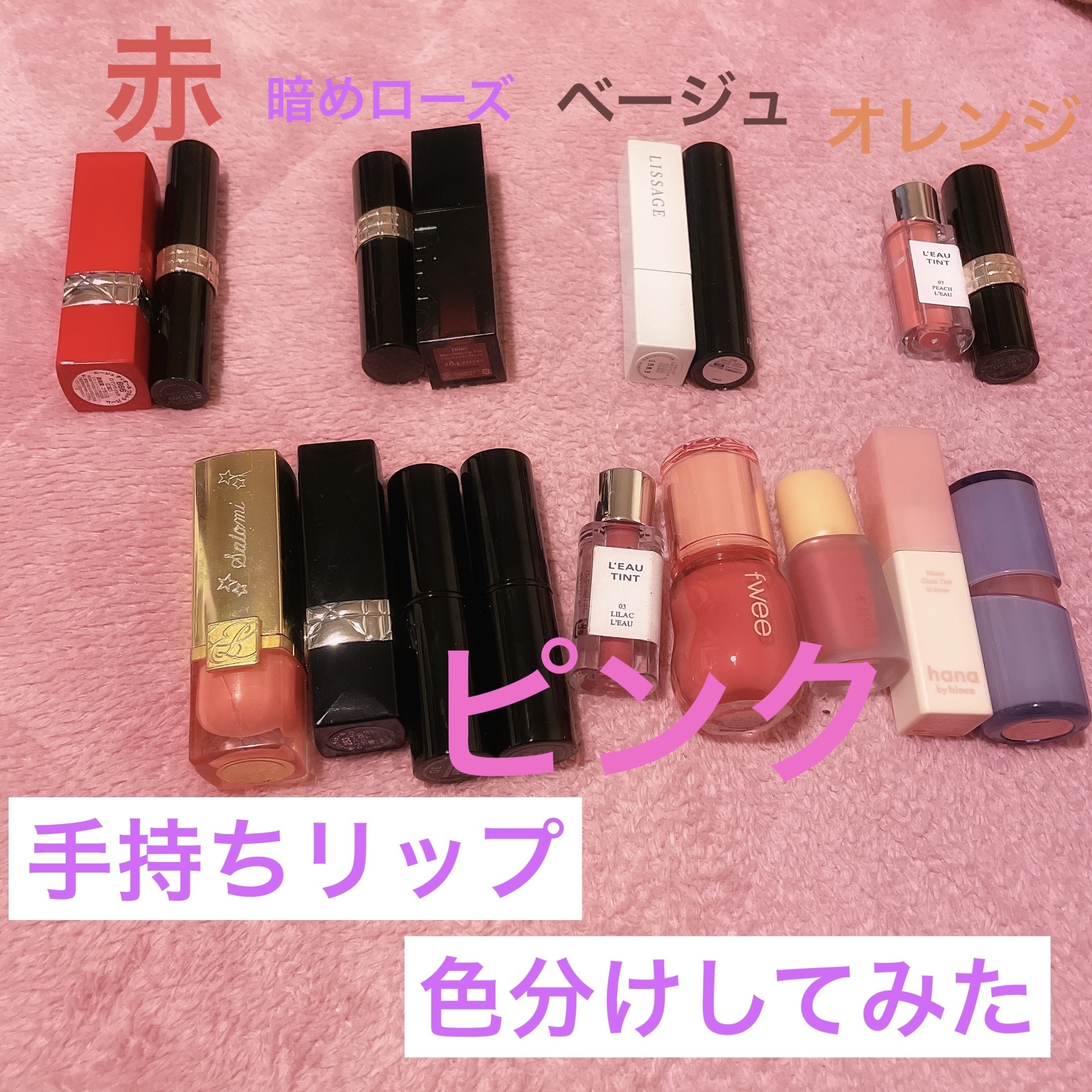 - <R001 ベア> 水、ジフェニルジメチコン、オクチルドデカノール、ビスジグリセリルポリアシルアジペート-2、リンゴ酸ジイソステアリル、トリメチルシロキシフェニルジメチコン、水添ポリイソブテン、ジグリセリン、ポリソルベート60、BG、セチルPEG/PPG-10/1ジメチコン、1,2-ヘキサンジオール、ペンチレングリコール、(アクリル酸ヒドロキシエチル/アクリロイルジメチルタウリンNa)コポリマー、セテアレス-20、スクワラン、フェノキシエタノール、酸化チタン、香料、エチルヘキシルグリセリン、黄5、赤227、イソステアリン酸ソルビタン、水酸化Al、ポリアクリル酸アンモニウム、酢酸トコフェロール、黄4、青1、ヒアルロン酸Na、(アルギニン/リシン)ポリペプチド、加水分解ヒアルロン酸、トコフェロール、アセチルヒアルロン酸Na、ソルビン酸 <R002 ロウローズ> 水、ジフェニルジメチコン、オクチルドデカノール、ビスジグリセリルポリアシルアジペート-2、リンゴ酸ジイソステアリル、トリメチルシロキシフェニルジメチコン、水添ポリイソブテン、ジグリセリン、ポリソルベート60、BG、セチルPEG/PPG-10/1ジメチコン、1,2-ヘキサンジオール、ペンチレングリコール、(アクリル酸ヒドロキシエチル/アクリロイルジメチルタウリンNa)コポリマー、セテアレス-20、スクワラン、フェノキシエタノール、酸化チタン、香料、エチルヘキシルグリセリン、黄5、赤227、イソステアリン酸ソルビタン、酢酸トコフェロール、水酸化Al、ポリアクリル酸アンモニウム、ヒアルロン酸Na、青1、加水分解ヒアルロン酸、(アルギニン/リシン)ポリペプチド、トコフェロール、アセチルヒアルロン酸Na、ソルビン酸 <R003 ロウプリコット> 水、ジフェニルジメチコン、オクチルドデカノール、ビスジグリセリルポリアシルアジペート-2、リンゴ酸ジイソステアリル、トリメチルシロキシフェニルジメチコン、水添ポリイソブテン、ジグリセリン、ポリソルベート60、BG、セチルPEG/PPG-10/1ジメチコン、1,2-ヘキサンジオール、ペンチレングリコール、(アクリル酸ヒドロキシエチル/アクリロイルジメチルタウリンNa)コポリマー、セテアレス-20、スクワラン、フェノキシエタノール、香料、エチルヘキシルグリセリン、酸化チタン、黄5、イソステアリン酸ソルビタン、赤227、酢酸トコフェロール、ヒアルロン酸Na、水酸化Al、ポリアクリル酸アンモニウム、加水分解ヒアルロン酸、青1、(アルギニン/リシン)ポリペプチド、トコフェロール、アセチルヒアルロン酸Na、ソルビン酸 <R004 フィーバー> 水、ジフェニルジメチコン、オクチルドデカノール、リンゴ酸ジイソステアリル、ビスジグリセリルポリアシルアジペート-2、トリメチルシロキシフェニルジメチコン、水添ポリイソブテン、ジグリセリン、ポリソルベート60、BG、セチルPEG/PPG-10/1ジメチコン、1,2-ヘキサンジオール、ペンチレングリコール、(アクリル酸ヒドロキシエチル/アクリロイルジメチルタウリンNa)コポリマー、セテアレス-20、スクワラン、フェノキシエタノール、香料、エチルヘキシルグリセリン、黄5、赤227、イソステアリン酸ソルビタン、酢酸トコフェロール、ヒアルロン酸Na、加水分解ヒアルロン酸、(アルギニン/リシン)ポリペプチド、トコフェロール、アセチルヒアルロン酸Na、ソルビン酸 <R005 ハイビスカス> 水、ジフェニルジメチコン、オクチルドデカノール、ビスジグリセリルポリアシルアジペート-2、リンゴ酸ジイソステアリル、トリメチルシロキシフェニルジメチコン、水添ポリイソブテン、ジグリセリン、ポリソルベート60、BG、セチルPEG/PPG-10/1ジメチコン、1,2-ヘキサンジオール、ペンチレングリコール、アクリル酸ヒドロキシエチル/アクリロイルジメチルタウリンNa)コポリマー、セテアレス-20、スクワラン、フェノキシエタノール、香料、エチルヘキシルグリセリン、赤227、黄5、イソステアリン酸ソルビタン、赤104(1)、酢酸トコフェロール、ヒアルロン酸Na、加水分解ヒアルロン酸、(アルギニン/リシン)ポリペプチド、トコフェロール、アセチルヒアルロン酸Na、ソルビン酸 <R006 ロウグレープ> 水、ジフェニルジメチコン、ビスジグリセリルポリアシルアジペート-2、リンゴ酸ジイソステアリル、オクチルドデカノール、トリメチルシロキシフェニルジメチコン、水添ポリイソブテン、ジグリセリン、ポリソルベート60、BG、セチルPEG/PPG-10/1ジメチコン、1,2-ヘキサンジオール、ペンチレングリコール、(アクリル酸ヒドロキシエチル/アクリロイルジメチルタウリンNa)コポリマー、セテアレス-20、スクワラン、酸化チタン、フェノキシエタノール、香料、エチルヘキシルグリセリン、黄5、赤227、イソステアリン酸ソルビタン、水酸化Al、ポリアクリル酸アンモニウム、酢酸トコフェロール、ヒアルロン酸Na、青1、加水分解ヒアルロン酸、(アルギニン/リシン)ポリペプチド、トコフェロール、アセチルヒアルロン酸Na、ソルビン酸 <R007 チル> 水、ジフェニルジメチコン、オクチルドデカノール、ビスジ