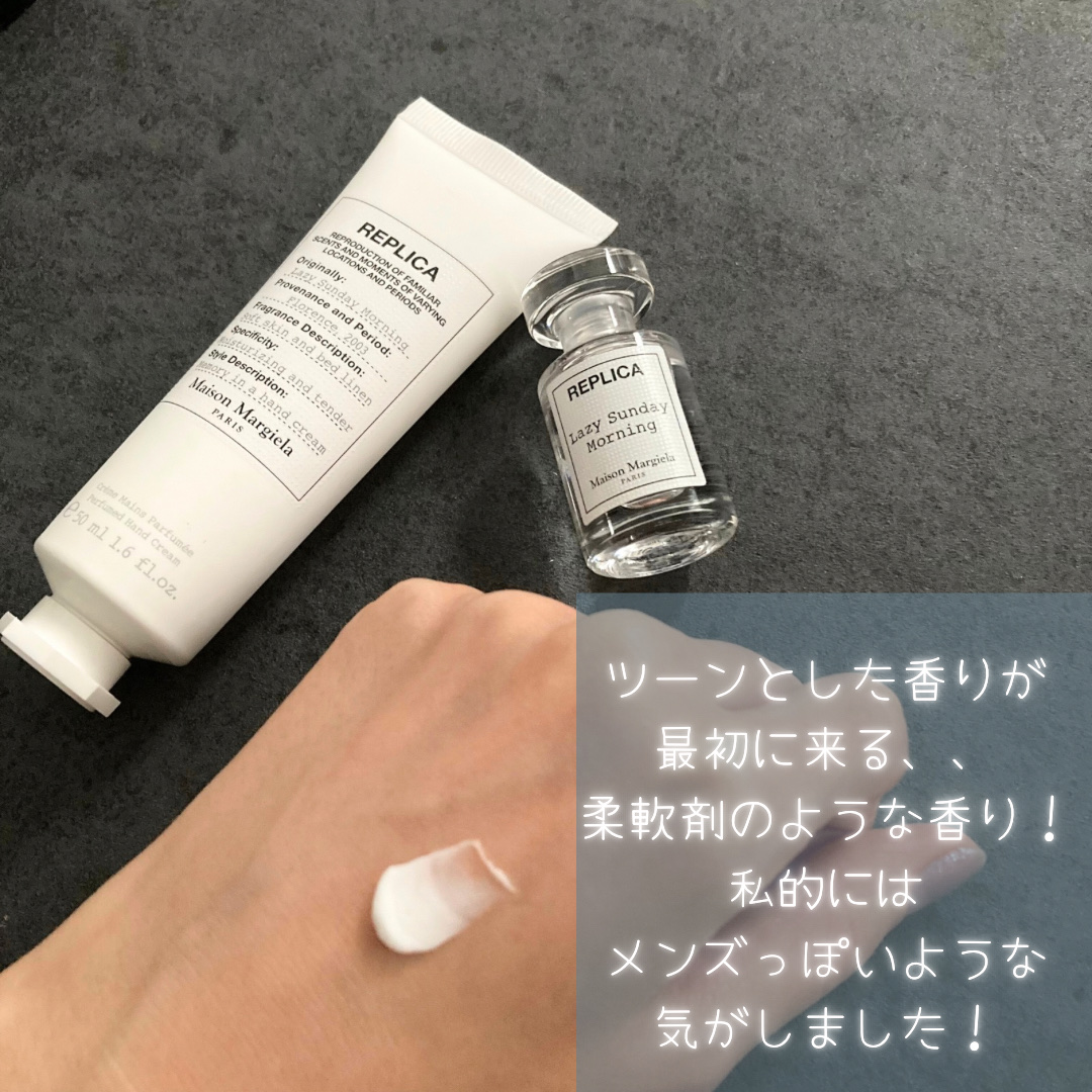 ずっと気になってたレプリカ オードトワレ レイジーサンデー モーニング。 買ってよかったって思えたお品。 重厚感のある香りも好きですが、こちらはどしっと来ない爽やかな香りで性別を問わず愛される香りだと感じました。 香りは早めに消えてしまう感じではあるけど、また付けれる楽しみがあるのでそれも嬉しいꕤ︎︎·͜·