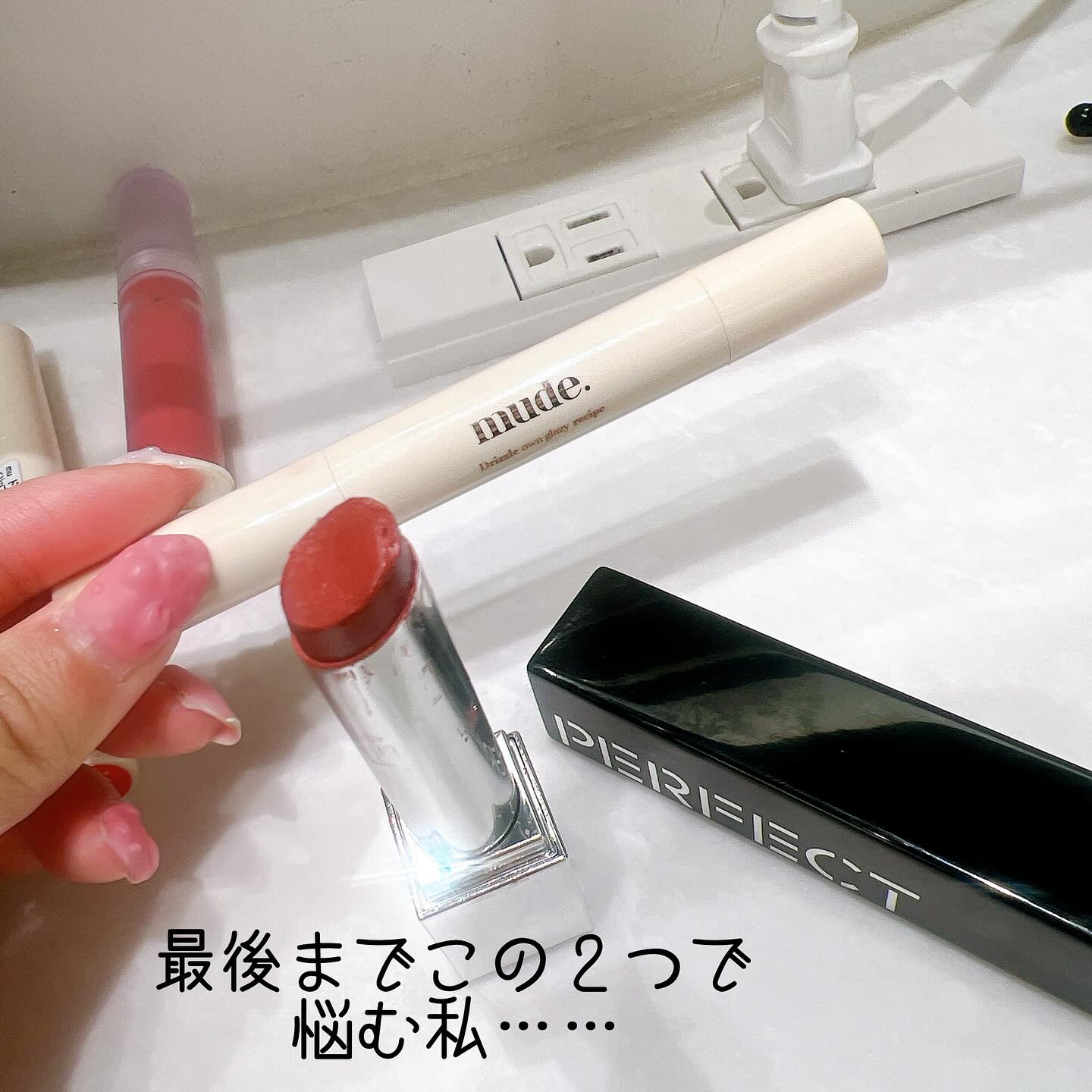 約80%が美容液成分(オイル成分含む)で、乾燥していてもするする塗れちゃうのも良いところ🥺💕 パッケージも大人かわいい感じで、ポーチに入れておくのが便利なスリムタプでした🙆♀️ ローズピンクはローズ系が苦手だったイエベさんにも使いやすいと思うし、 ブラウンレッドはブラウンが入ると途端に顔色悪くなるブルベの私も使いやすくて感謝🙏