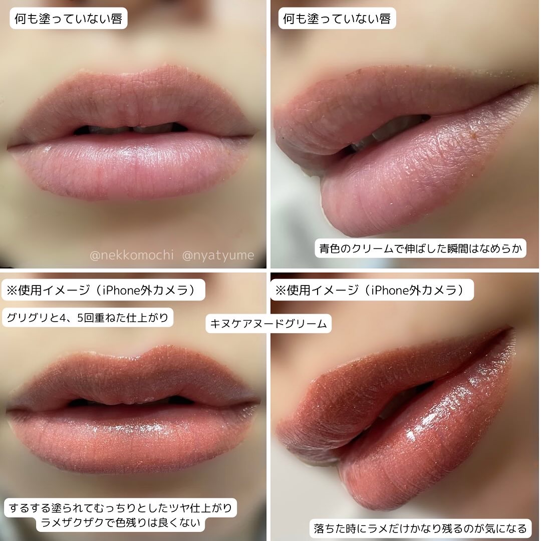 shuuemura⏦゚kinucarenudesgleam975kinucareglowupgleam938溜息がでるほど可愛いlip(・-・̥)🤍⟡.·シアー発色のトーンアップカラーで美容液をつけているような仕上がりに⏦゚香りが少しあって...