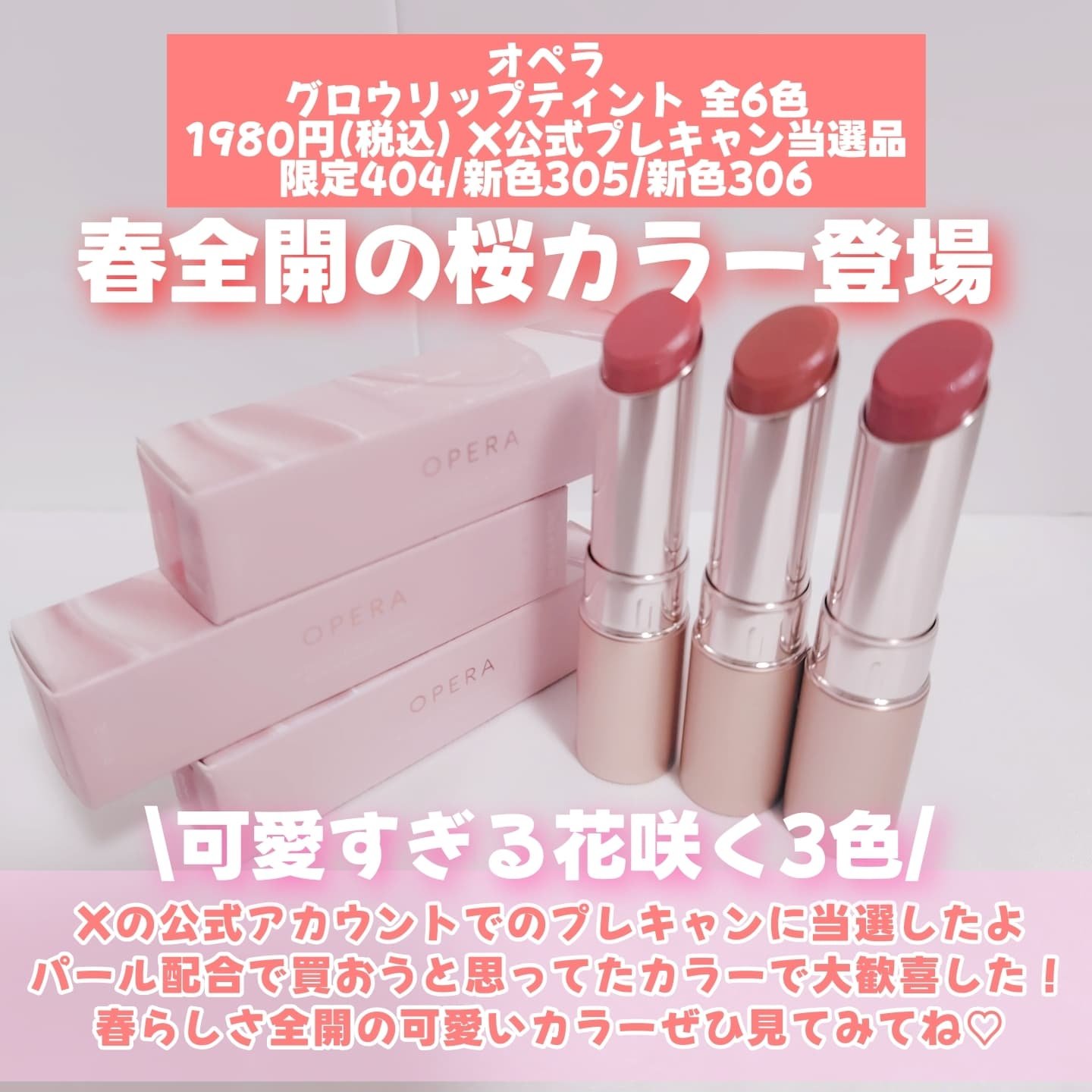 OPERAの新作桜リップ🌸🩷305ベイビーピンク🧡306アイシーベージュ・305ベイビーピンクシルバーラメがチラチラ輝くリップ・306アイシーベージュブルーラメがアクセントのリップ大好きなオペラのリップの春限定&新色🌸今回はイエベカラー2種を...