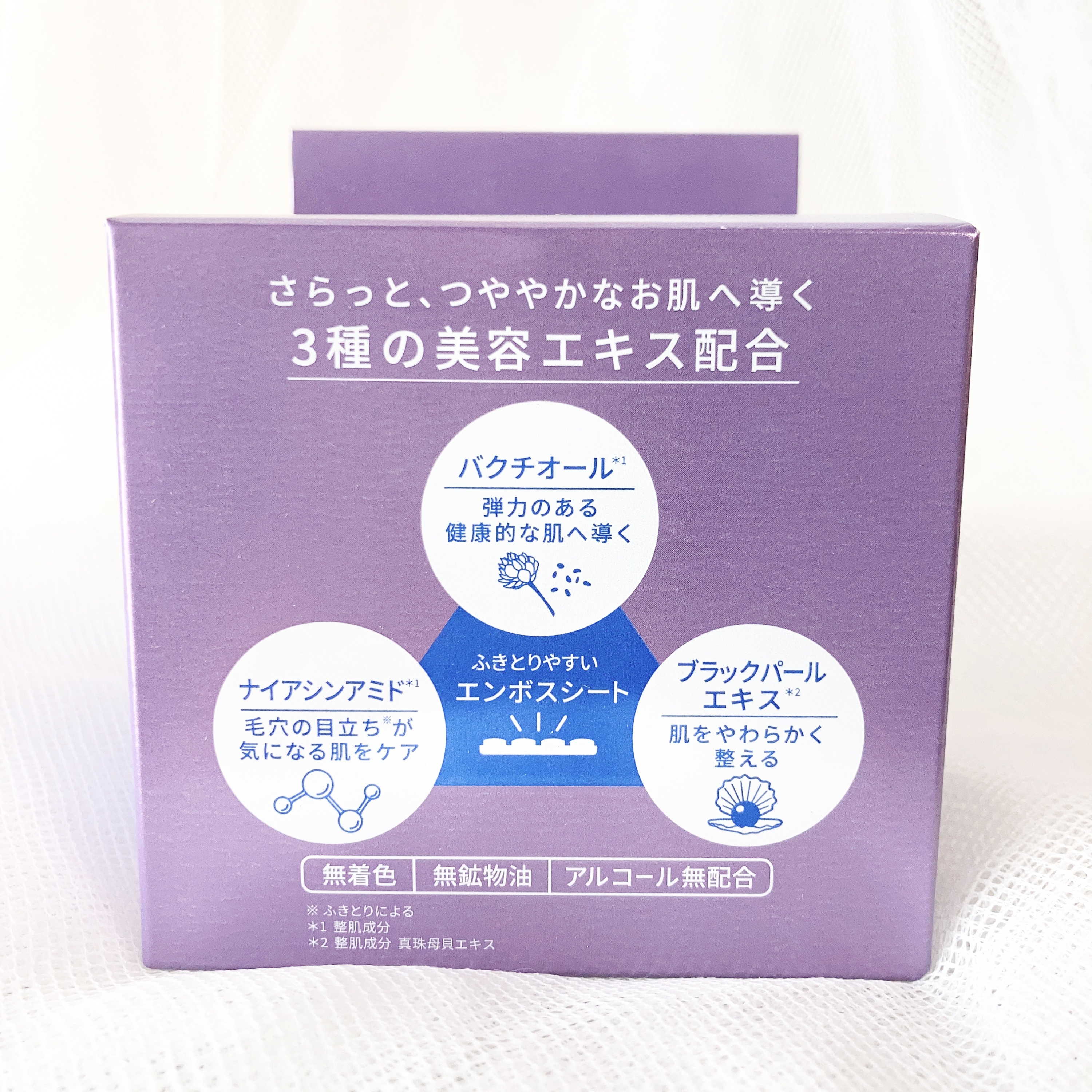 - 古い角質によるごわつき、毛穴のざらつき、余分な皮脂をやさしくふきとりOFFできる、皮脂※・毛穴ケア用のトナーパッドです。 次世代レチノールと呼ばれるバクチオール*1やブラックパールエキス*2、ナイアシンアミド*1を配合し、毛穴目立ちが気になる肌をケア※。 真珠のように、明るくつややかな肌へ導きます。 シートは古い角質や皮脂をやさしくOFFできる凹凸面と、パックとして使えるフラット面の2WAY仕様。 ウォーターマリンの香りつきです。 (*1 整肌成分 *2 整肌成分 真珠母貝エキス ※ ふきとりによる)