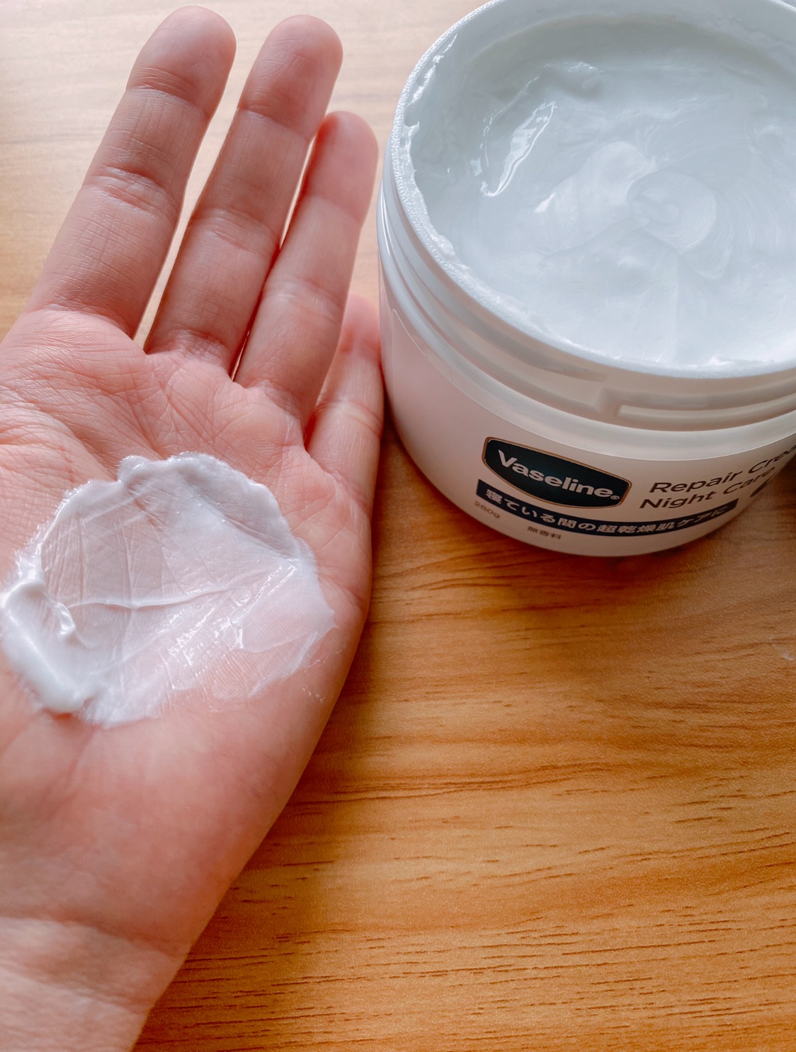ヴァセリンから、超乾燥肌向けのナイトクリームが登場! レチノールや4種のヒアルロン酸配合。 べたつかずにスーッと肌になじむクリームが、超乾燥肌にも浸透し、うるおいを与えます。 朝まで潤ってすべすべ♪なんか膜がある感じじゃないのが私好みです🥰