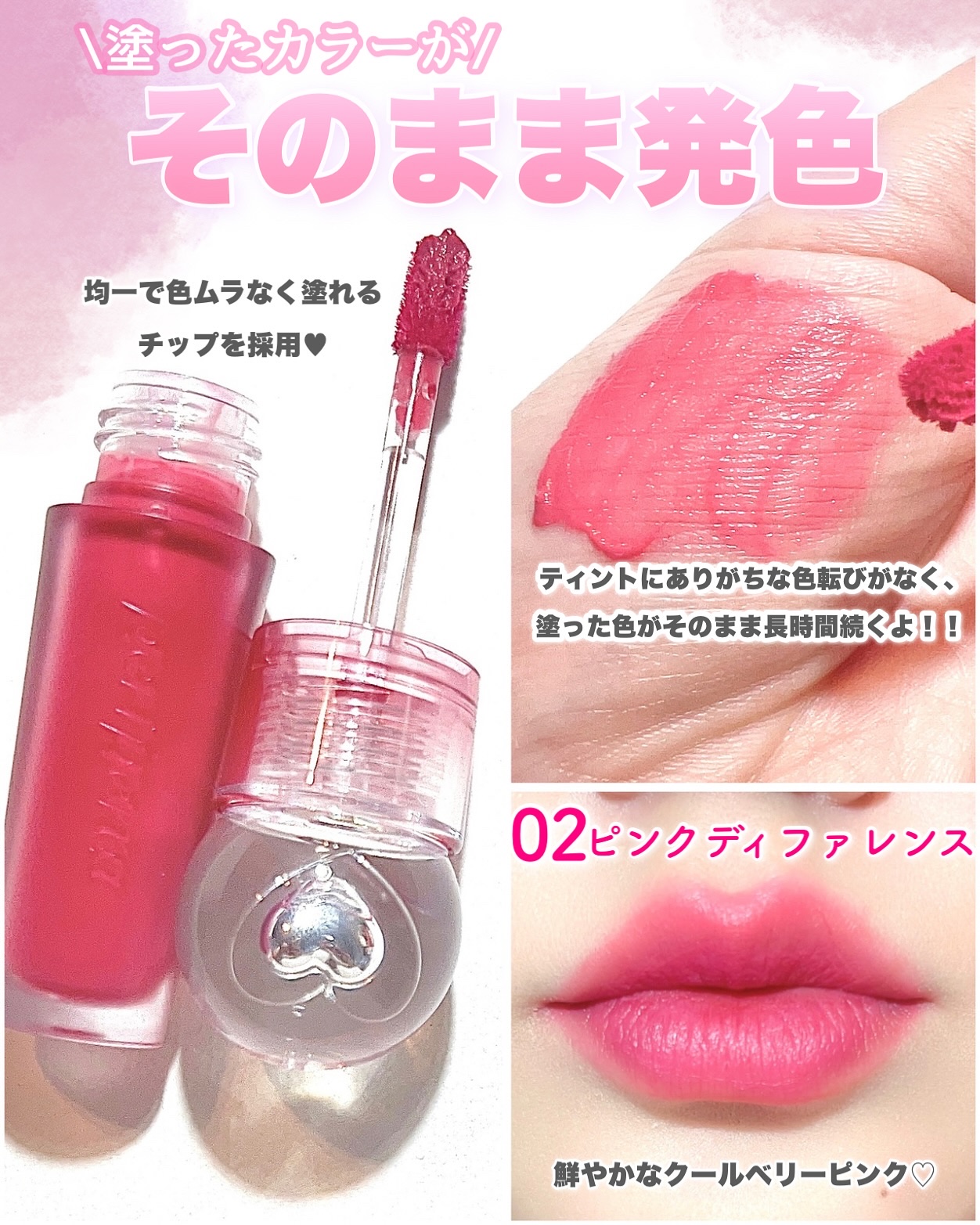 ペリペラインクジェラブルティント02ピンクディファレンスPoint1♥periperaから新作のリップティントが発売!Point2♥WatergeltoMatte、新テクスチャーPoint3♥塗ったカラーそのまましっかり発色うるおい感のあるつ...