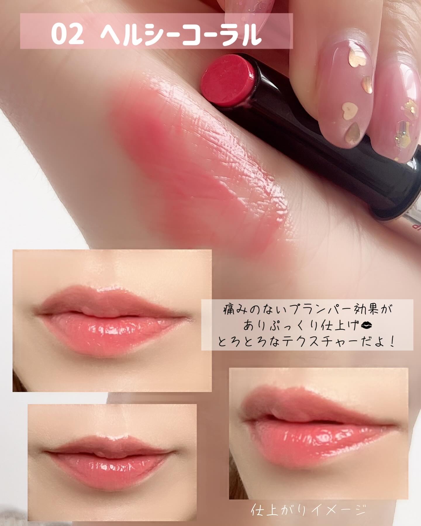 #PRVELYVELYෆ̖́-#グラスリップボリューミングバーム02ヘルシーコーラル柔らかくて使いやすいメルティングテクスチャーツヤ感と半透明のカラー感かわいい♡⸝⸝⸝⸝プランパーでボリューム感ある仕上がりに刺激はほぼほぼないかなツヤツヤでし...