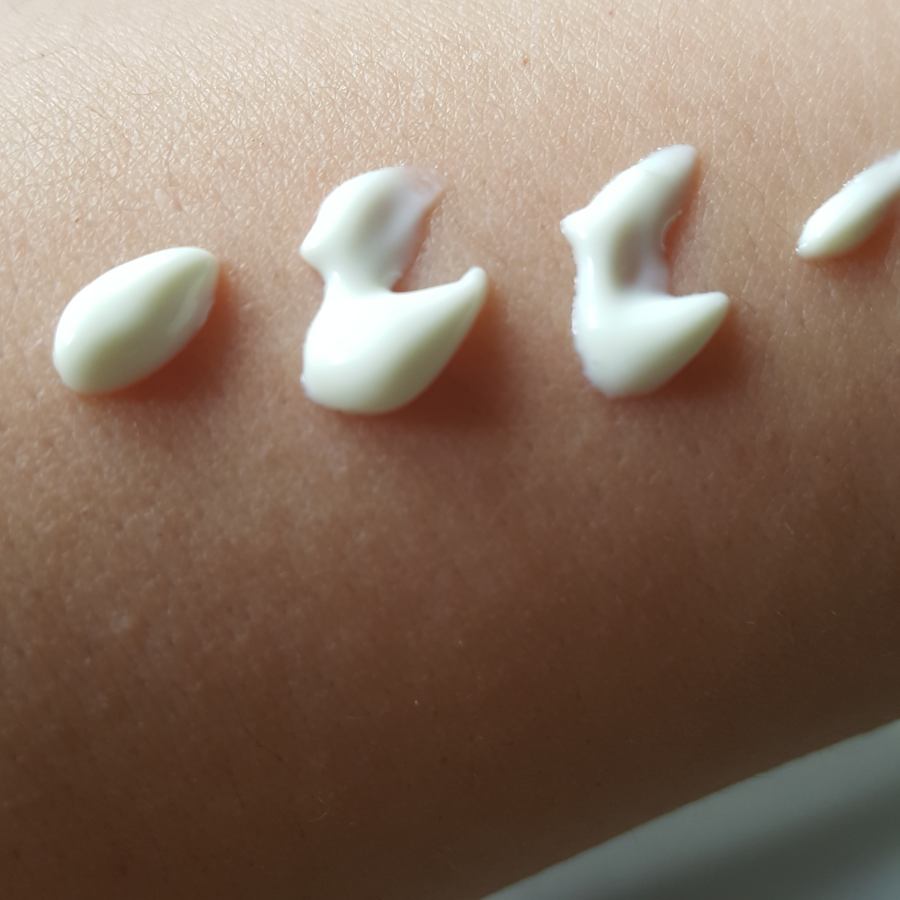 セラムのように軽いテクスチャーで、伸ばしやすく、すっと肌になじみ、しっとり潤うのに全くベタつくことはありませんでした。 SPF50+ PA++++の強力な紫外線カット効果がありながら、日焼け止めの特有のキシみや匂いもありません。 ヒアルロン酸とツボクサエキス配合で、水分チャージしながら肌を優しく鎮静してくれるので、白浮きすることなく、ツヤのある肌に仕上がりました!