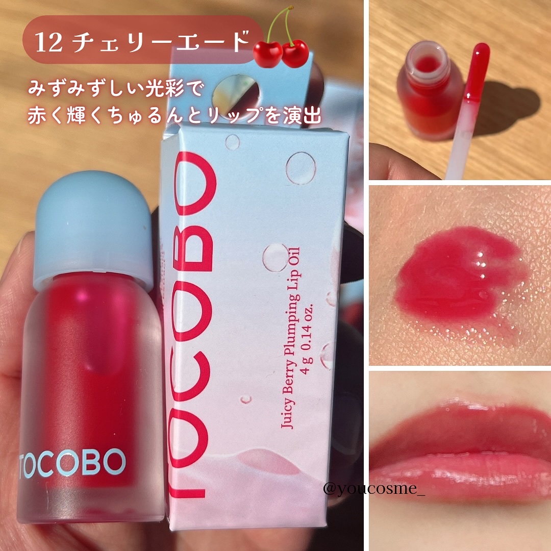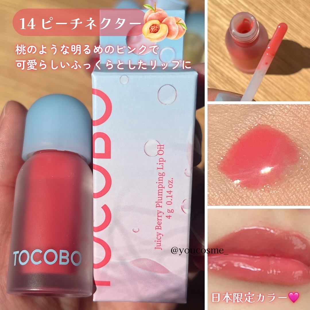 TOCOBOJuicyBerryPlumpingLipOilジューシーベリープランピングリップオイル\14,16の2色は日本限定カラー/11HONEYLEMON ハニーレモン12CHNRRYADE チェリーエード14PEACHNECTOR ピ...