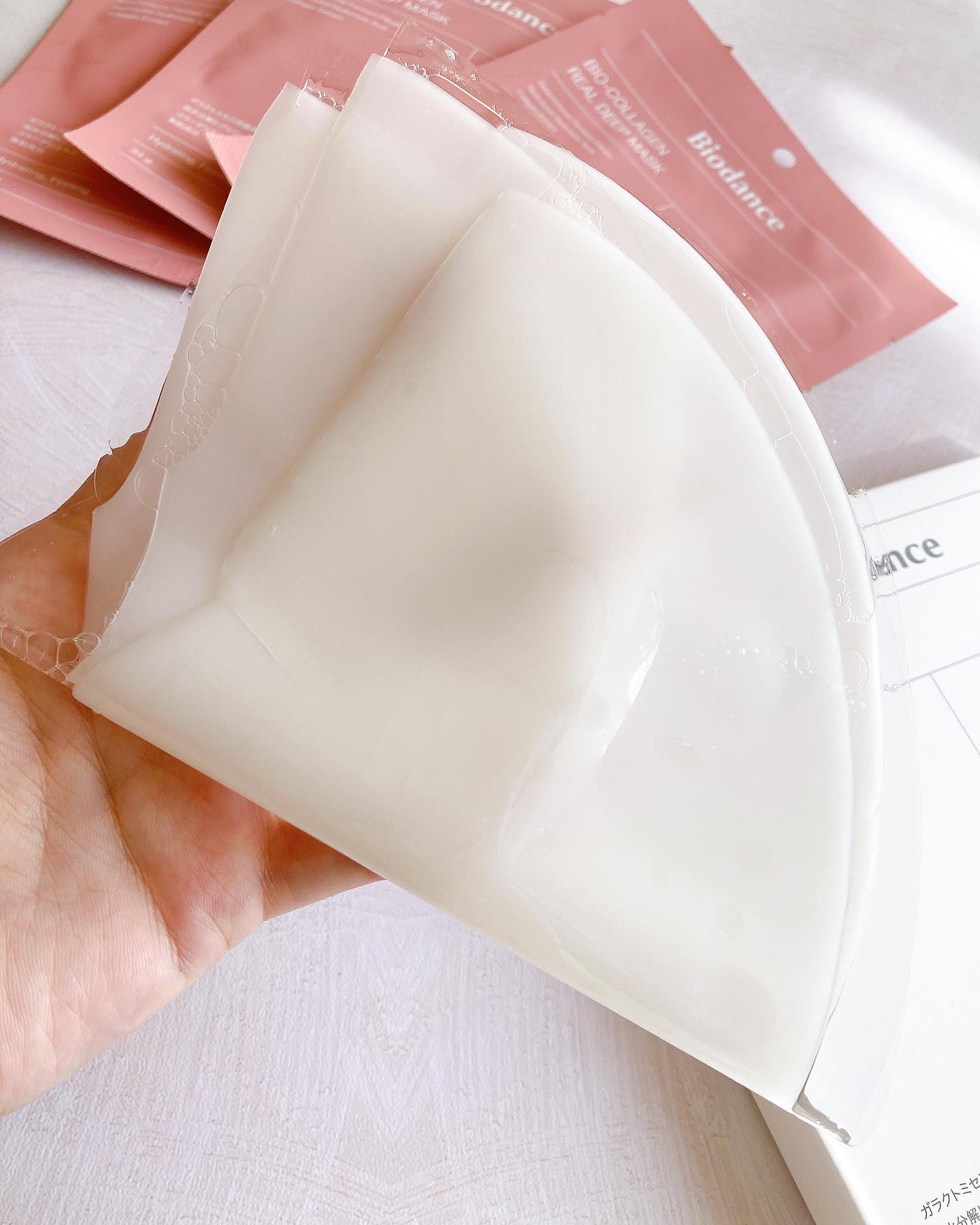 美容液1本をそのまま固めたぷるぷるのマスク🫧 初めは白いぷるっぷるのマスクなのに、3時間程付けておくだけで透明に変わるの!!しかも乾燥してるとこから透明に変わるみたいで 液だれ・ベタつきがなく密着力もいいから、付けておくのが億劫にならないし家事をしながらとかながらケアができちゃう𓍯 ぷるっぷるんシートで驚いた🎀 拭き取りしたあとそのままパックにもいけちゃうくらいヒタヒタなのに使用後はしっかり肌に馴染んでってくれてもっちり肌に𐙚⸝⸝꙳