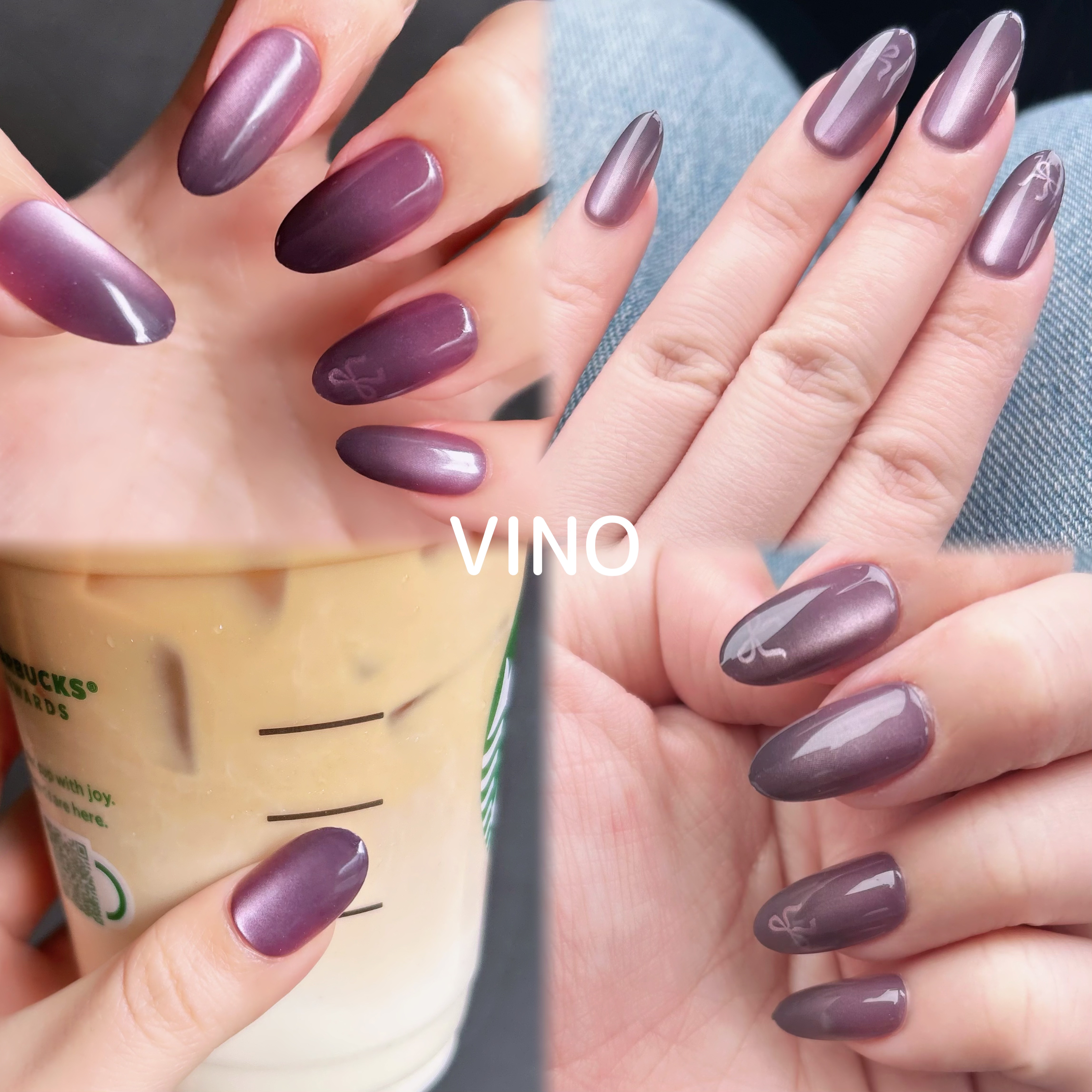 \夜桜カラーのネイルチップ2選/VINOはしっとり落ち着いたワインパープルにさりげないリボンがワンポイントで大人可愛い雰囲気に。MIOはちゅるんと透明感のあるパープルにピンクラメが上品で、月明かりの下できらめく花びらみたい。みんなはどっちが好...
