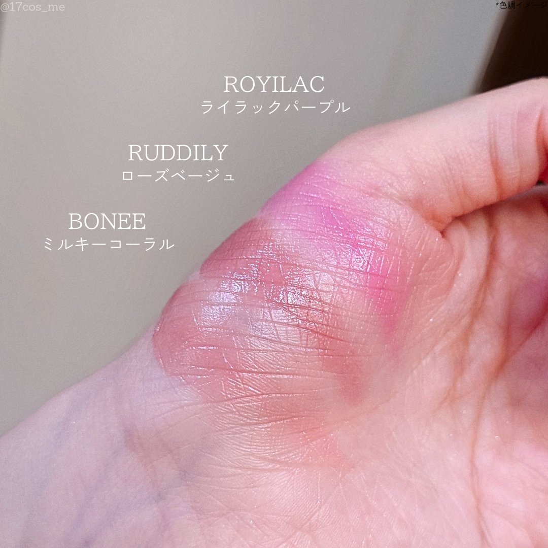 じゅわっと発色ヘルシーつやほっぺ💗✨✦NAMING.ソフティクリームブラッシュ01ROYILAC02RUDDILY03BONEE触るとじゅわっと溶ける硬めのバームチーク艶感のあるほっぺに仕上がります。透けるような発色でにじみ出るようなツヤ感が...