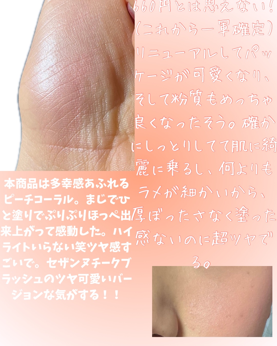 ᴄᴀɴᴍᴀᴋᴇパウダーチークスP03チアフルピーチ˚.⋆⁎⁺˳໒꒱‧₊˚❤︎彡プチプラとは思えない艶感とハートが可愛いパウダーチークp01とp02はもう持っているのですが良すぎて他のカラーも欲しくなり帰国してきてすぐ買いました!オリヤン店員の...