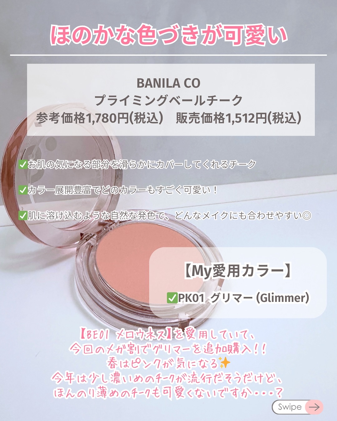 | チークランキング第9位 | フワッと色づいてくれる ・肌馴染みがよく程よい血色感が手に入る | 詳細を見る | |