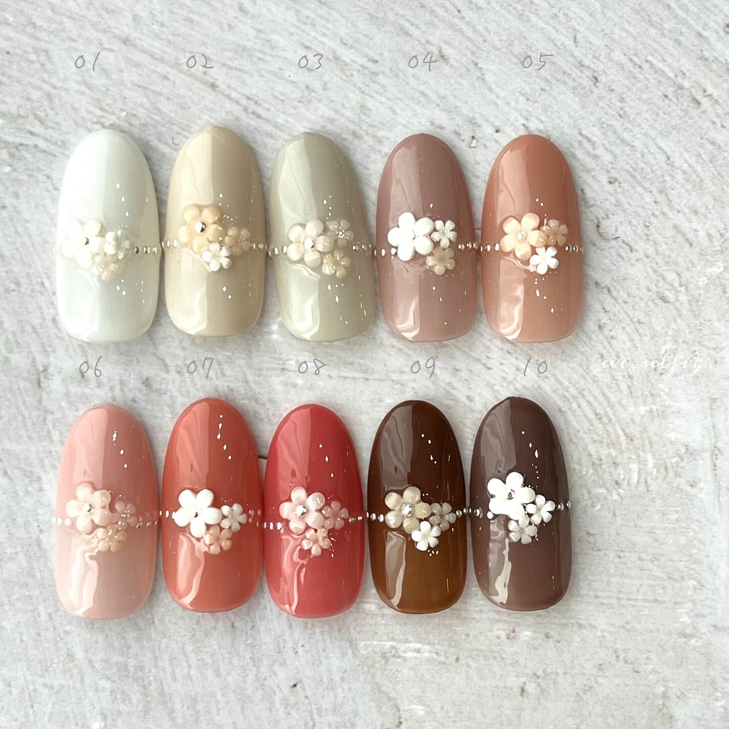 ムラなく塗るコツは 花びらが重なるように薄く重ねて、 私的には3度塗りがオススメ💐♥️ カラーチャートも爪先に向かって 3度塗りしているので参考にしてみてくださいね。