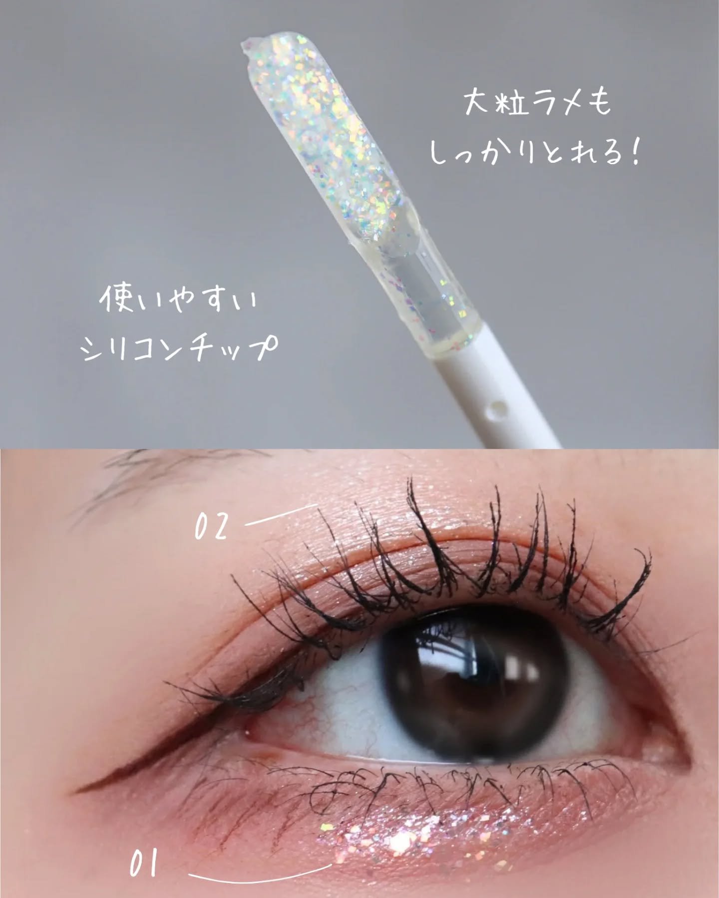 - 〇カラーで異なるこだわりのきらめき しっかり密着し、アイドルのようなときめく目元を叶える 〇肌への刺激が少ない使い心地のやわらかなチップ ~平らなシリコンチップだから大粒のホロも取りやすい~ 〇大容量の5.2g入り ~こだわりの大容量だから毎日使っても持ちが良い~ ☆美容液成分配合 ヒアルロン酸Na、加水分解コラーゲンを保湿成分として配合 <01 天使の涙(クリア)> 六角形の大粒ホロが角度によって変化して涙のようにキラキラ光るときめく・きらめくアイドルアイになれるアイドルプリズムグリッター。 <02 二度目惚れの秘密(オレンジ)> オレンジベースの上品なツヤと細かいホロが大人っぽさを演出するときめく・きらめくアイドルアイになれるアイドルプリズムグリッター。 <03 恋する瞬き(ピンク)> 恋を予感させるやわらかなピンクに大粒のホロが華やかにきらめく、ときめく・きらめくアイドルアイになれるアイドルプリズムグリッター。