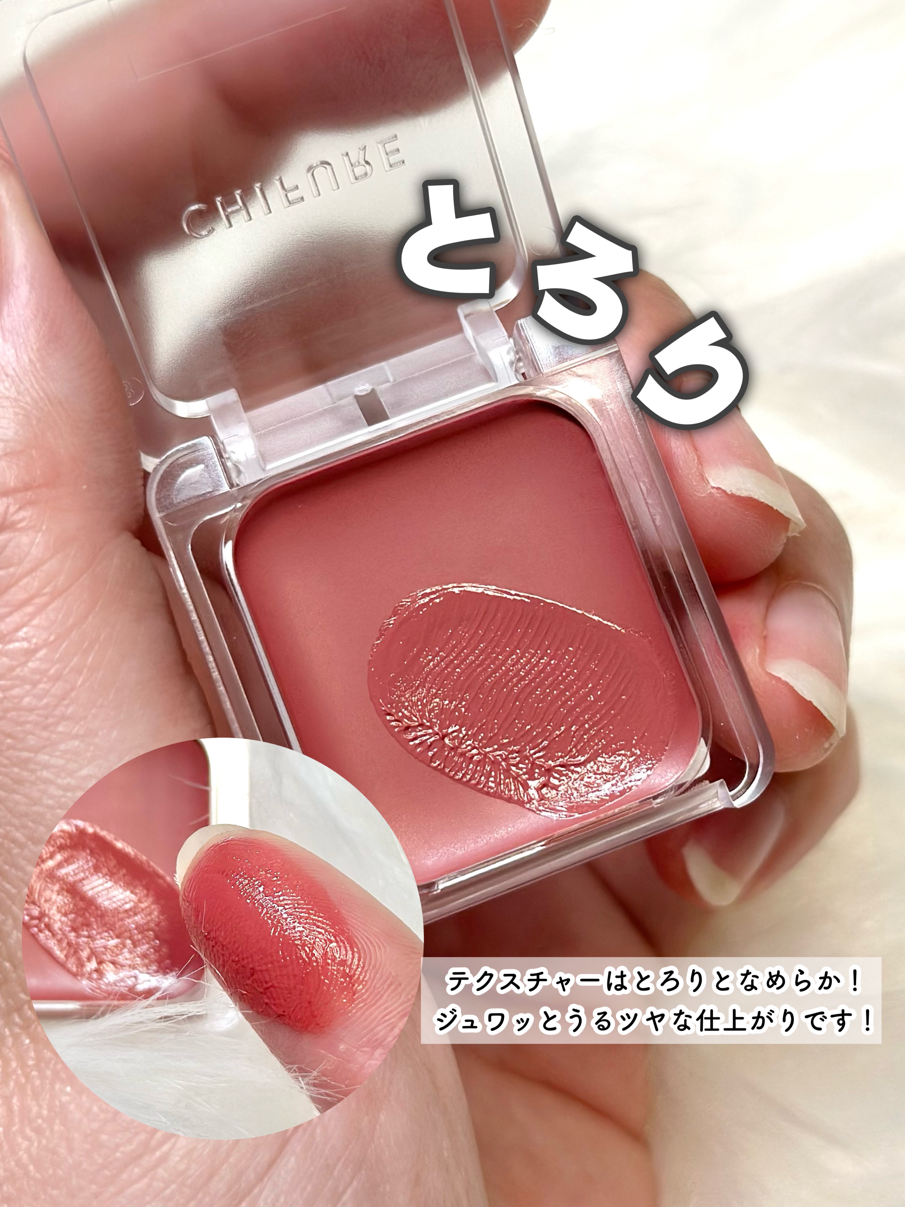 見た目も可愛いチークポップ♡ ナチュラルな血色感とツヤ感が美しい。 ダントツのツヤ感♡ちょっとトーンが低めなので膨張せずツヤツヤを楽しめます◎ めちゃくちゃ好き!ふわっとしつつもツヤっと♡絶妙な血色感! パケがコロンとしたハートで可愛い♡ 肌に溶け込む血色感。チーク苦手な人にイチオシ!どちらかと言うとイエベ向け ほわほわ細かい粉質◎ さすがコスメオタのサラさんプロデュース!!