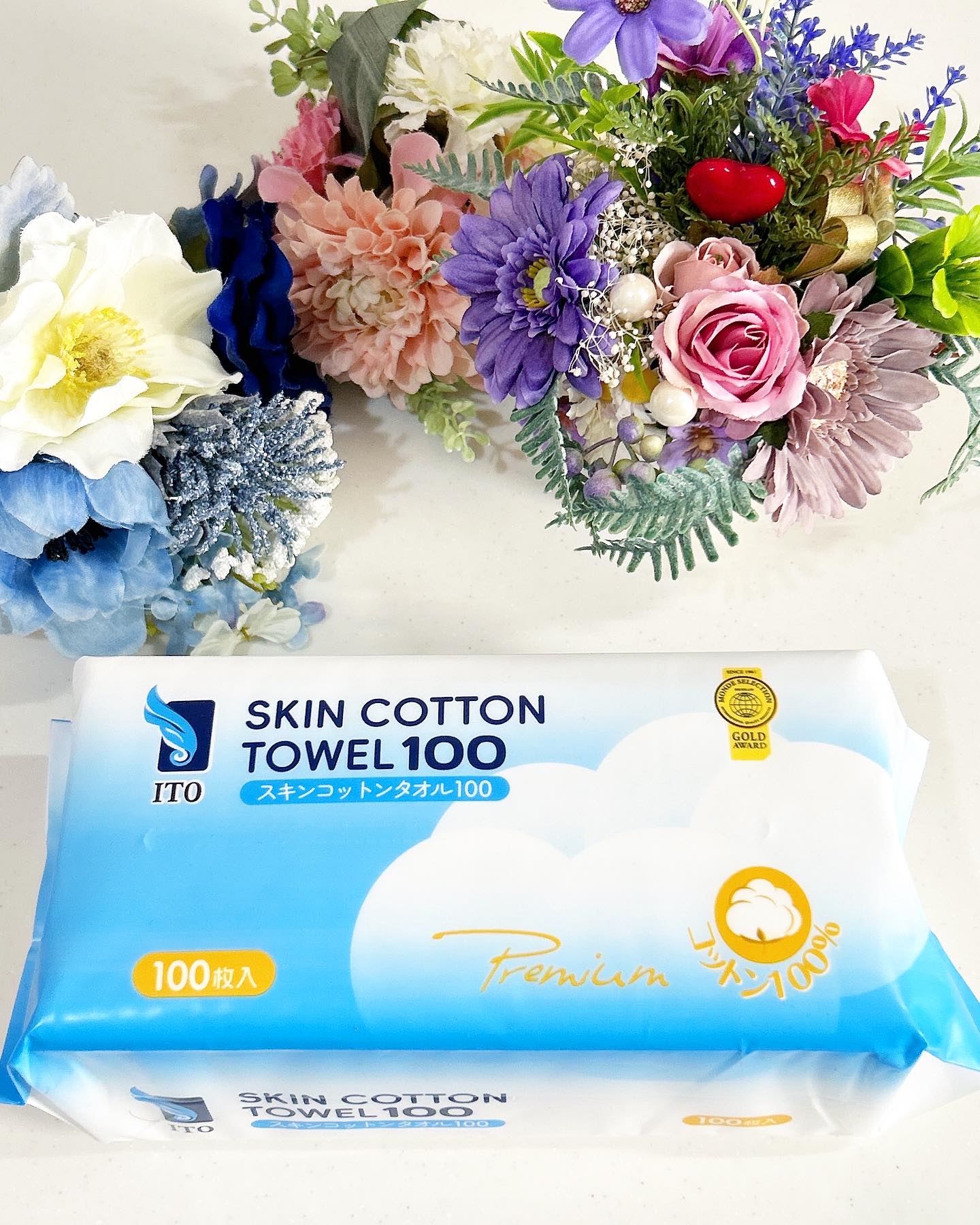 コットン100%で贅沢な肌触り。取り出しやすいティッシュタイプの使い切りタオル『ITOスキンコットンタオル100』 敏感肌の方やお子様にも使えるし、使い切りだから清潔😌 洗面所の必需品です♡