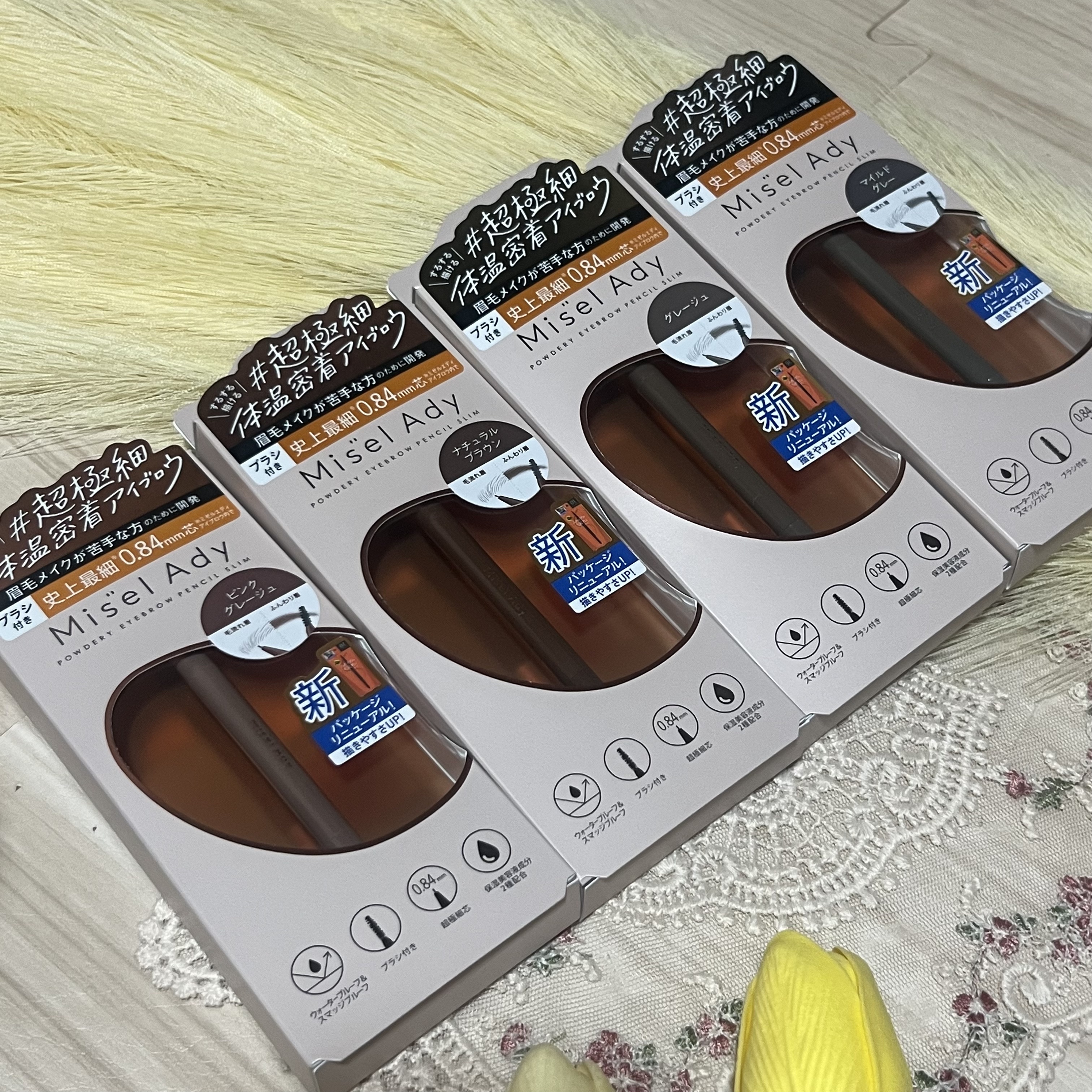 上手く描けないことが多い眉毛に救世主! スキューズミーMisel Ady パウダリーアイブロウペンシルスリム 最細0.84mm!! 折れやすく硬めの芯なので少しだけ繰り出して描くと毛並みも色づきも綺麗になります😍 カラバリ豊富で選びやすい! 少しずつ重ねて調整していくと綺麗に描けます😍