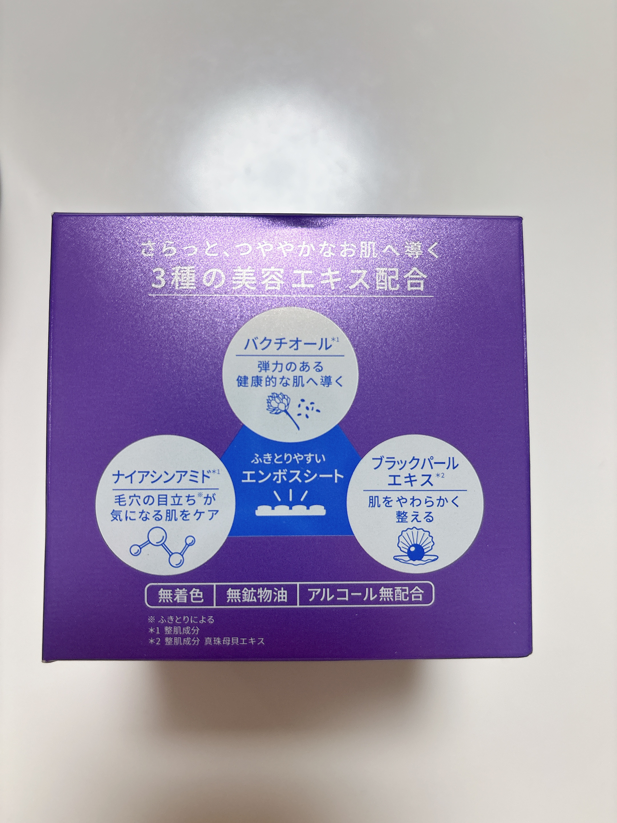 - 古い角質によるごわつき、毛穴のざらつき、余分な皮脂をやさしくふきとりOFFできる、皮脂※・毛穴ケア用のトナーパッドです。 次世代レチノールと呼ばれるバクチオール*1やブラックパールエキス*2、ナイアシンアミド*1を配合し、毛穴目立ちが気になる肌をケア※。 真珠のように、明るくつややかな肌へ導きます。 シートは古い角質や皮脂をやさしくOFFできる凹凸面と、パックとして使えるフラット面の2WAY仕様。 ウォーターマリンの香りつきです。 (*1 整肌成分 *2 整肌成分 真珠母貝エキス ※ ふきとりによる)
