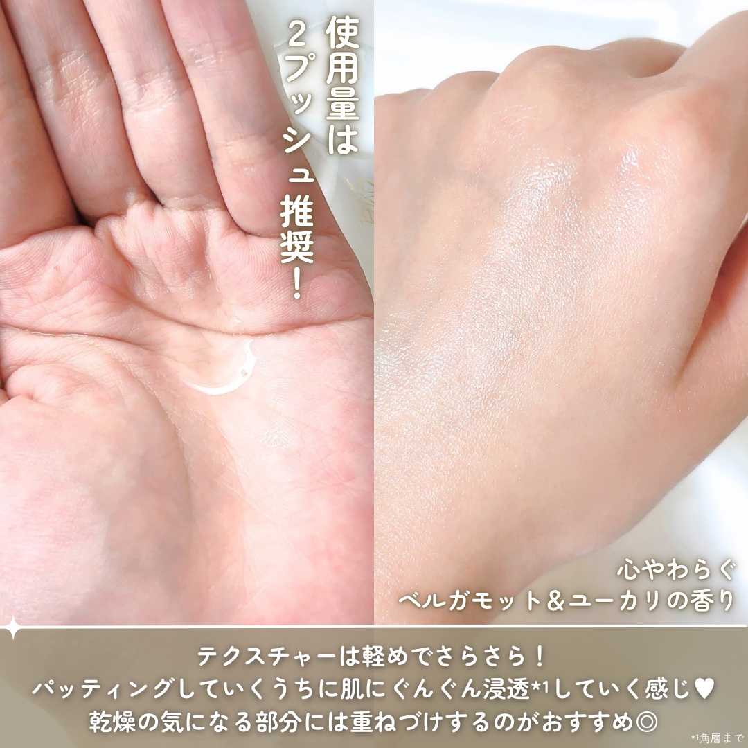 | スキンケアランキング第2位 | ベタつきもなくしっとり保湿されたような感じです♪香水っぽい上品な香りがします。 | 詳細を見る | |