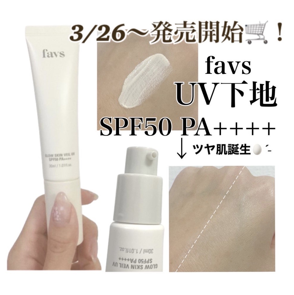 \favsのツヤ肌UV下地 /favsから、みずみずしい保湿力でUV対策もできる化粧下地が新発売✨みずみすしくて、クリーミーで本当に気持ちのいいテクスチャー。するする伸びて、白浮きしないのにツヤ肌に仕上がるの。そこそこカバー力もあるからこの上...