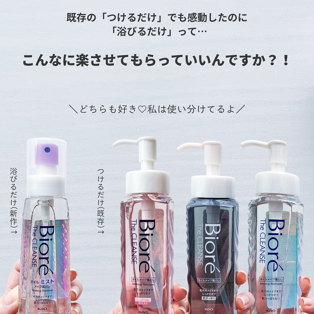 シューっと浴びるだけでメイクがするん!タッチレスで摩擦ゼロ⸜🙌🏻⸝メイク瞬浮きオイルお試ししたよ🩵ビオレザクレンズオイルミストメイク落とし初めて使った時は、ホントにこれで落ちるの??って半信半疑だったけど簡単にメイク落としができるからびっく...
