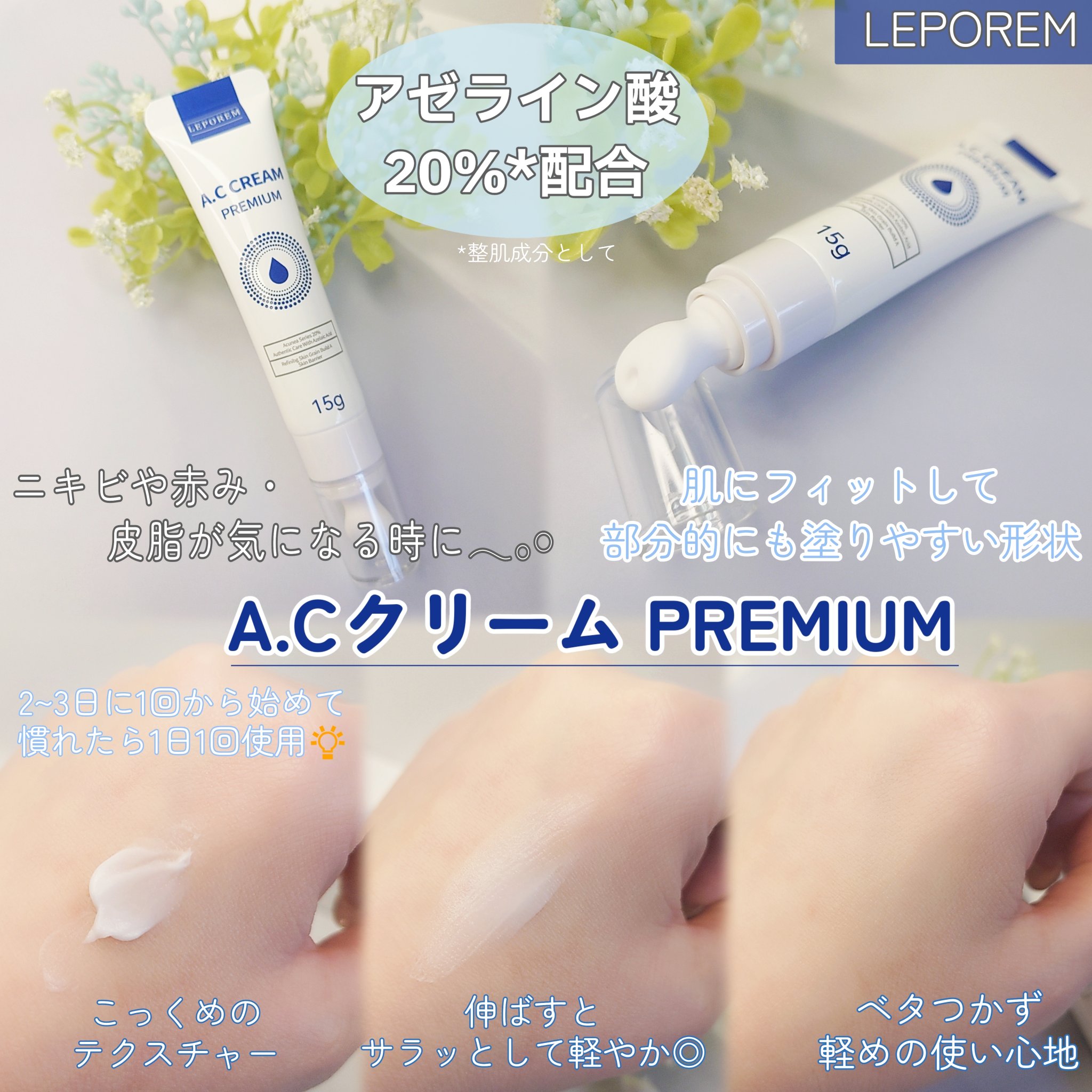#ルポレムさまのA.CクリームPREMIUM"純"アゼライン酸が20%配合されたプレミアムなクリーム❣️皮脂テカリや肌荒れなどの色んなトラブルケアをしたい方にオススメだよ✨シアバターなどの保湿成分も配合されていて、こっくりしたテクスチャーだけ...