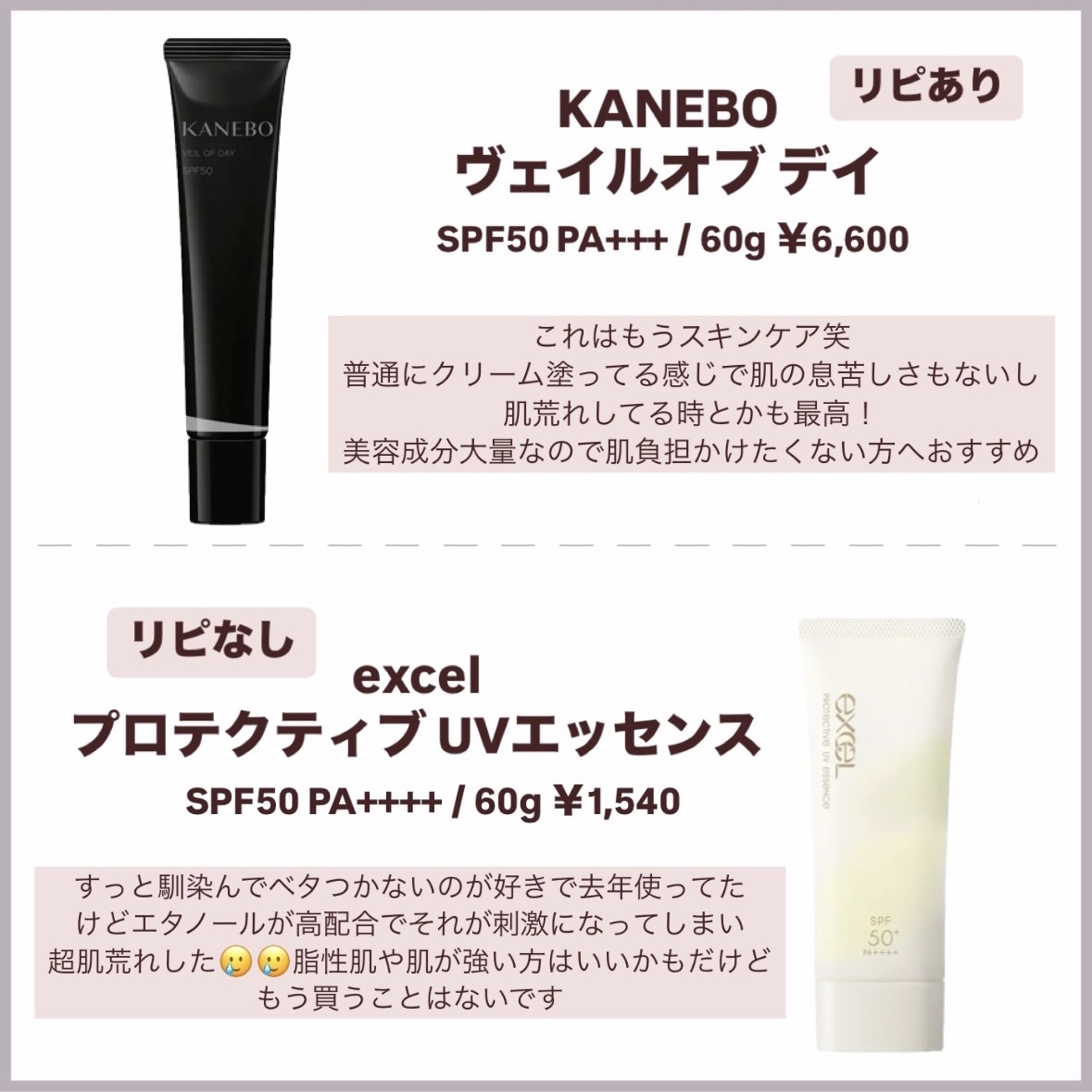 | 日焼け止め・UVケアランキング第14位 | まず塗ってみて その軽さに驚き!まるでスキンケアのようなみずみずしい感覚です | 詳細を見る | |