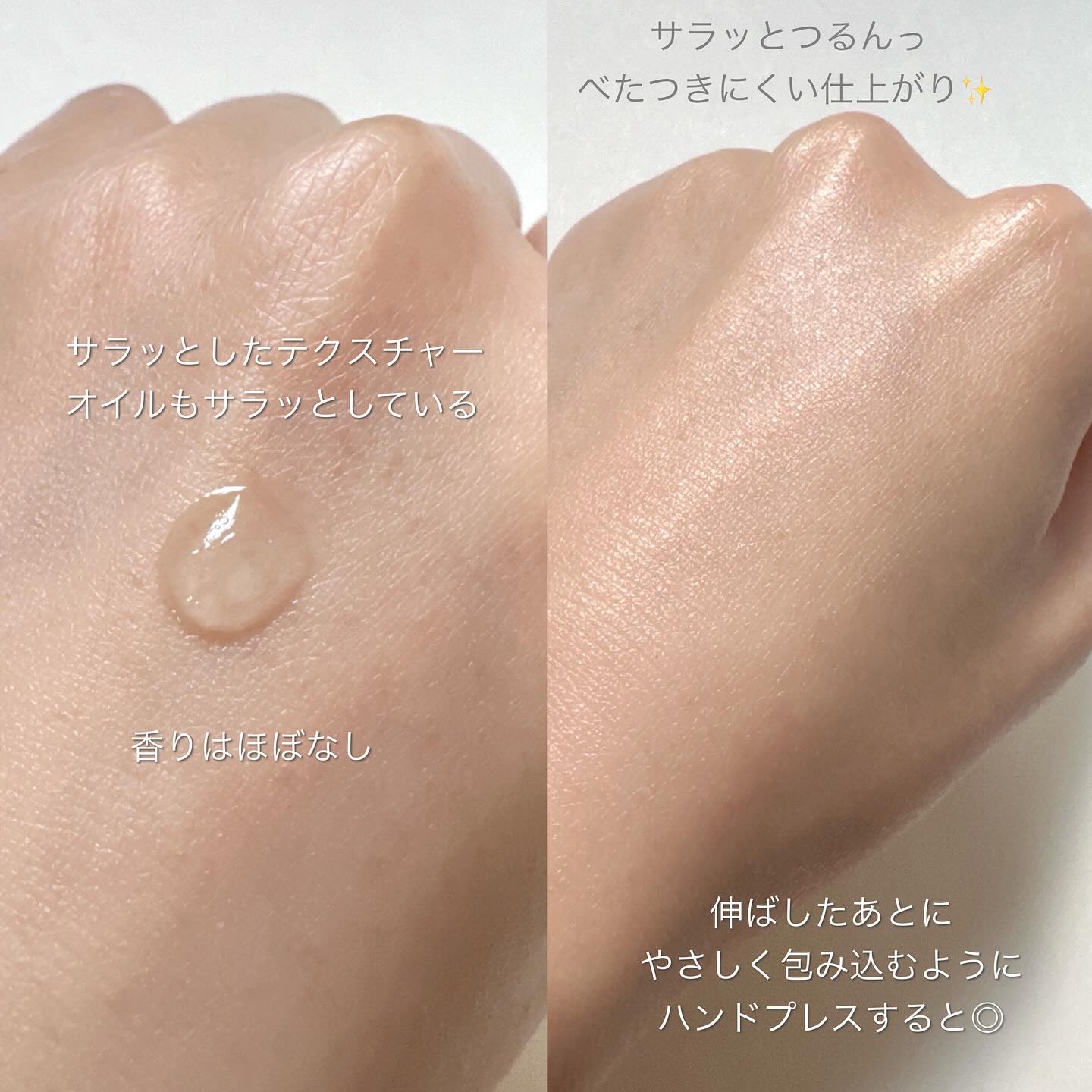 | スルスルっと伸びて、肌になじむとほんのりツヤ感を感じます。 後肌はさらり。 | 詳細を見る | ||
