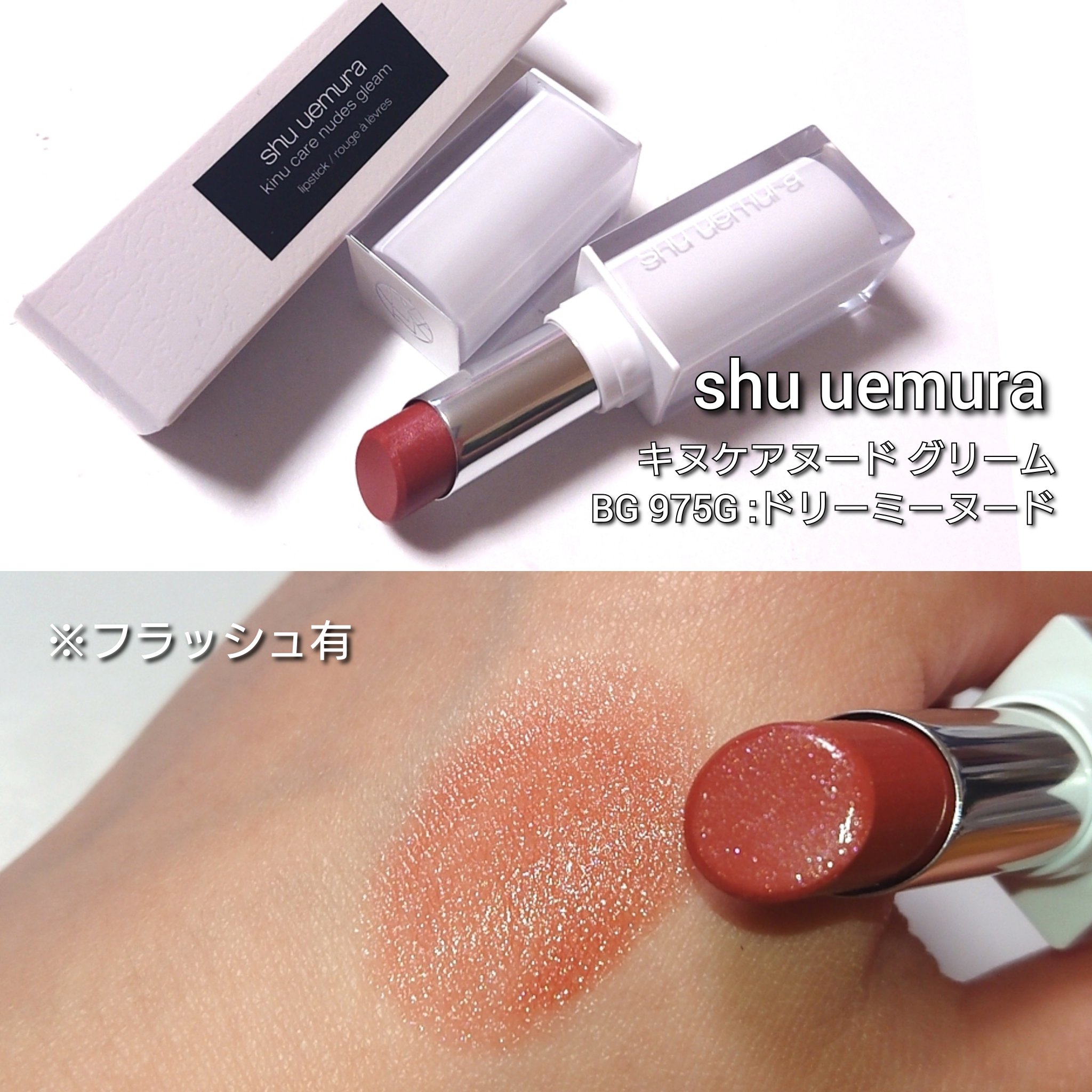 \4月11日発売.ᐟ.ᐟ/"濡れツヤパール配合"🫧LIPSでも高評価のバズリップ「キヌケアシリーズ」から新製品が登場𖤐´-▶︎shuuemuraキヌケアヌードグリームBG975Gドリーミーヌードくちびるから創る透明感演出。レフ板リップで顔色...