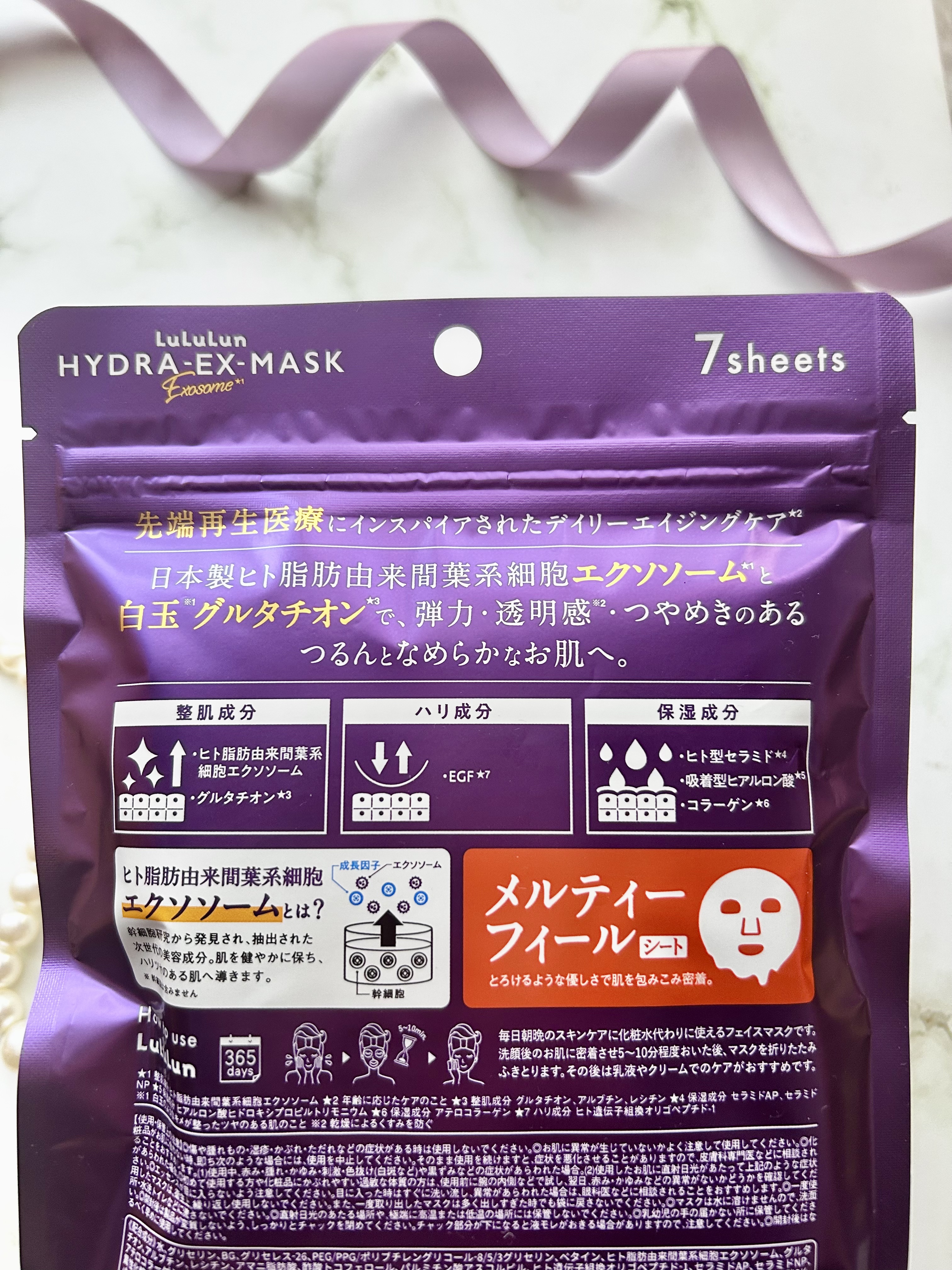 LuLuLunルルルンハイドラEXマスク28枚入/¥2,640(税込)ルルルンハイドラシリーズ💟先端再生テクノロジーにインスパイアされた、デイリーエイジングケア*マスク✨エクソソーム➡整肌成分ヒト脂肪由来間葉系細胞エクソソームグルタチオン➡弾...